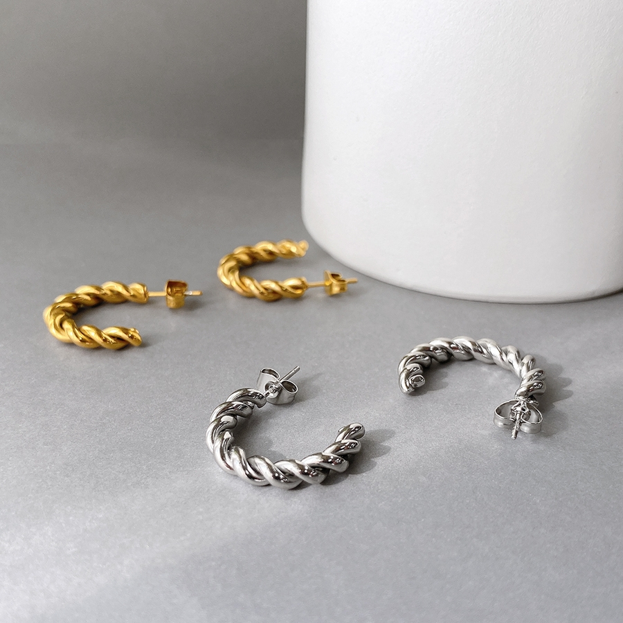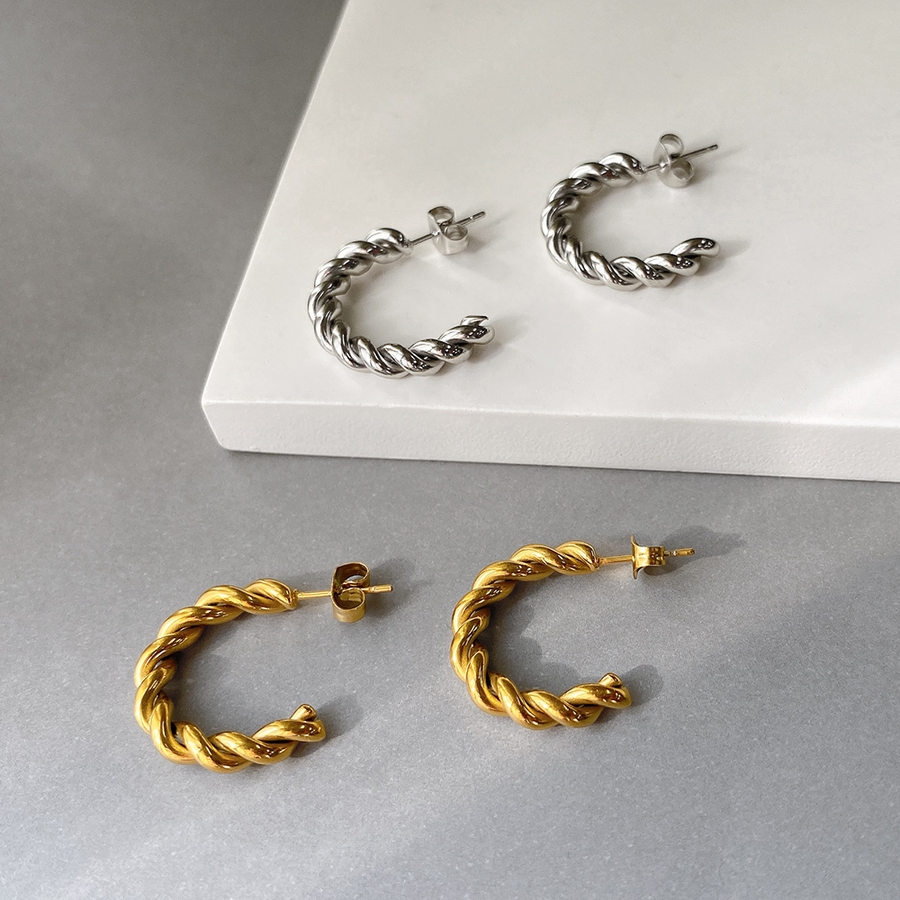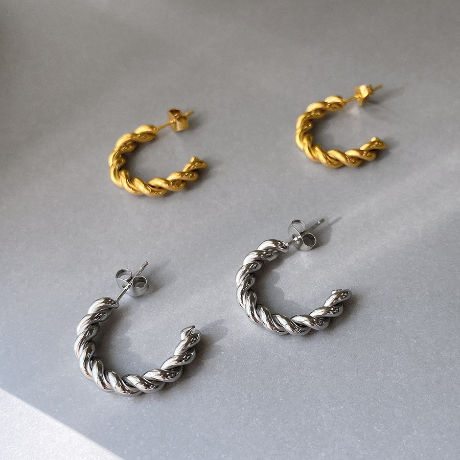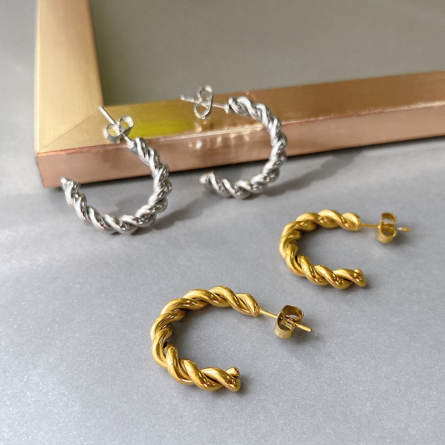 クラシカルな捻じれデザインが特徴的な、ツイストフープピアス♪