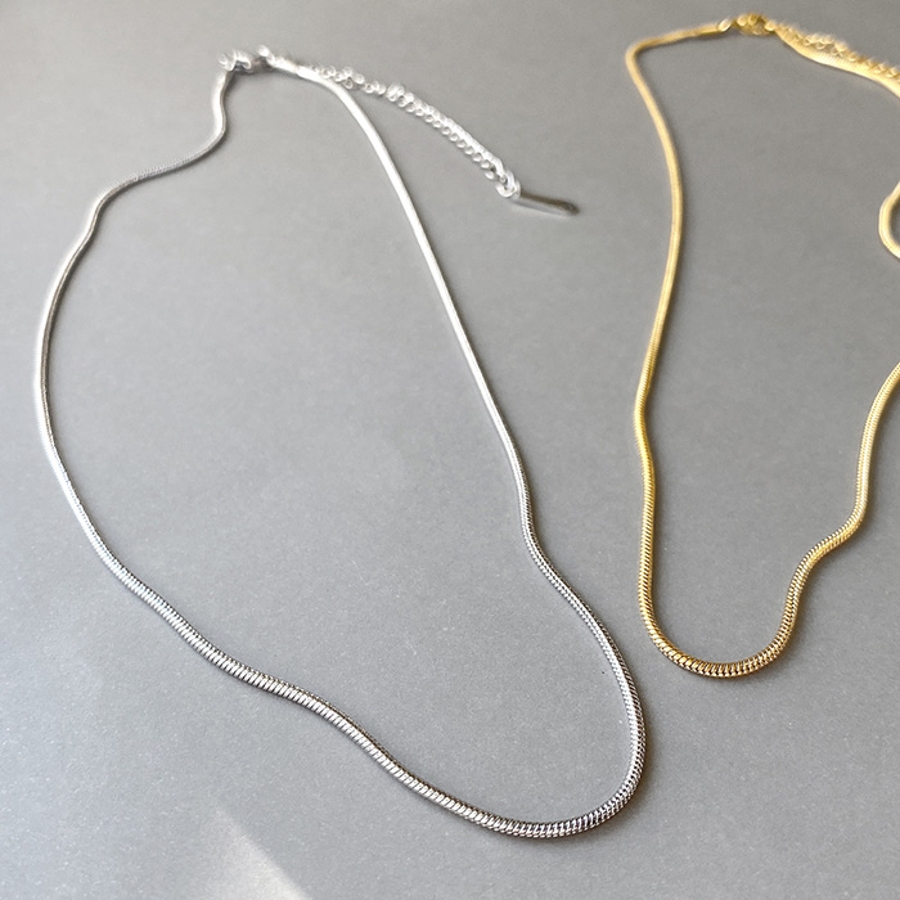 シンプルでお肌に吸い付くような質感のスネークチェーンネックレス♪