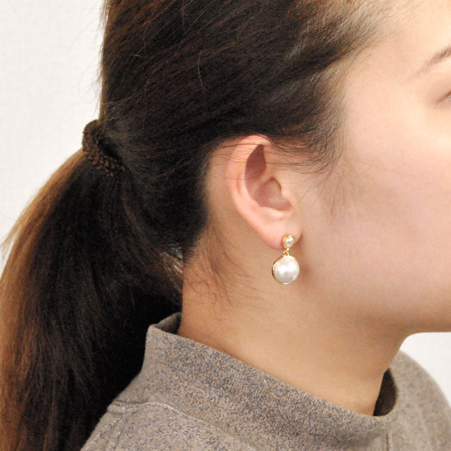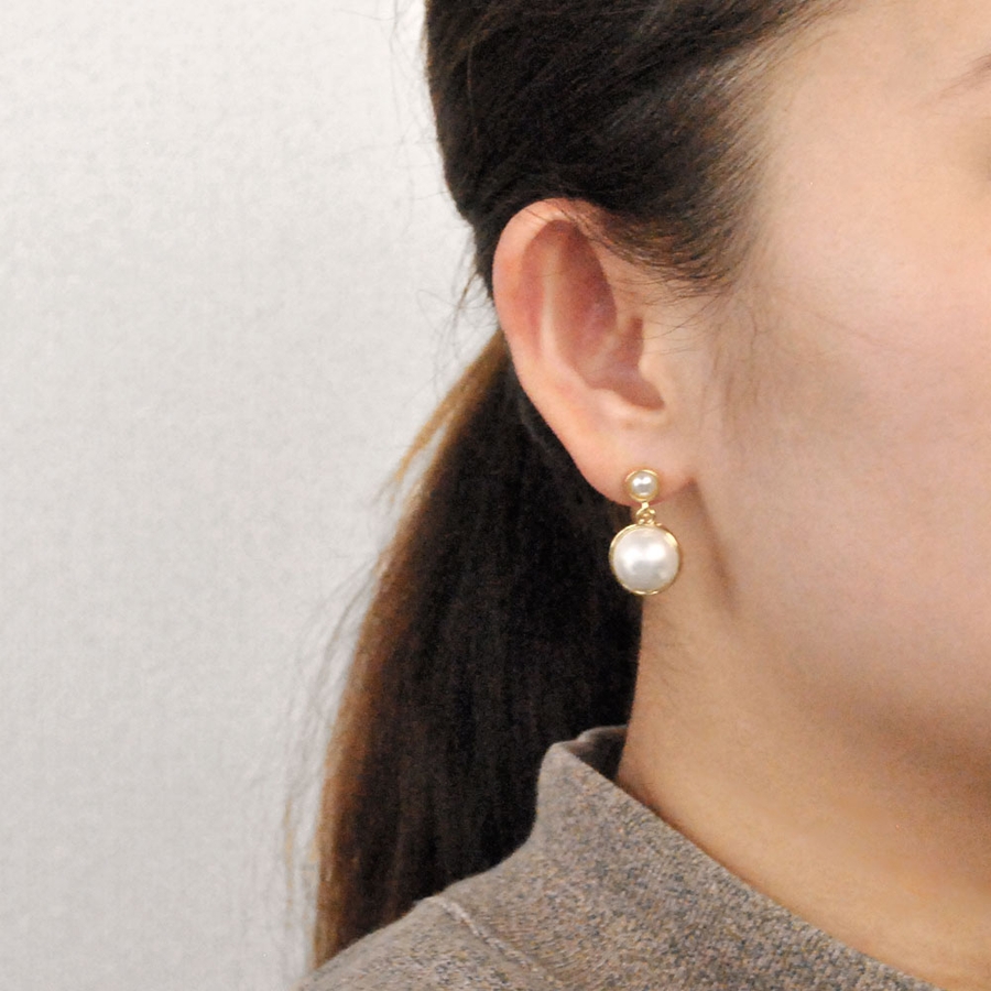 顔周りを華やかにパールが揺れる、ラウンドパールピアス♪