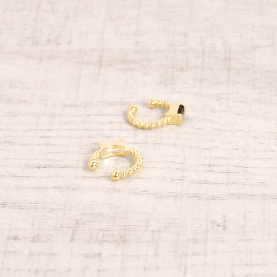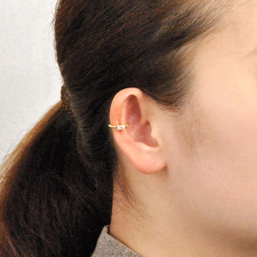 片耳用 スクエアストーンイヤーカフ 軟骨ピアスシルバーゴールド