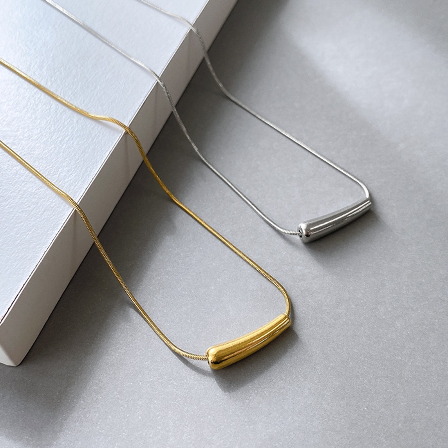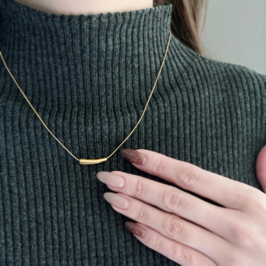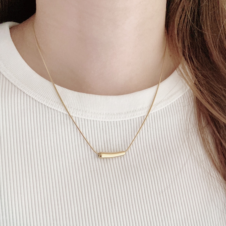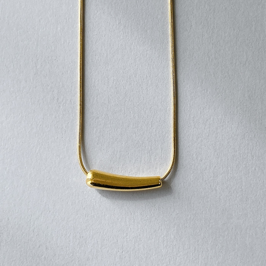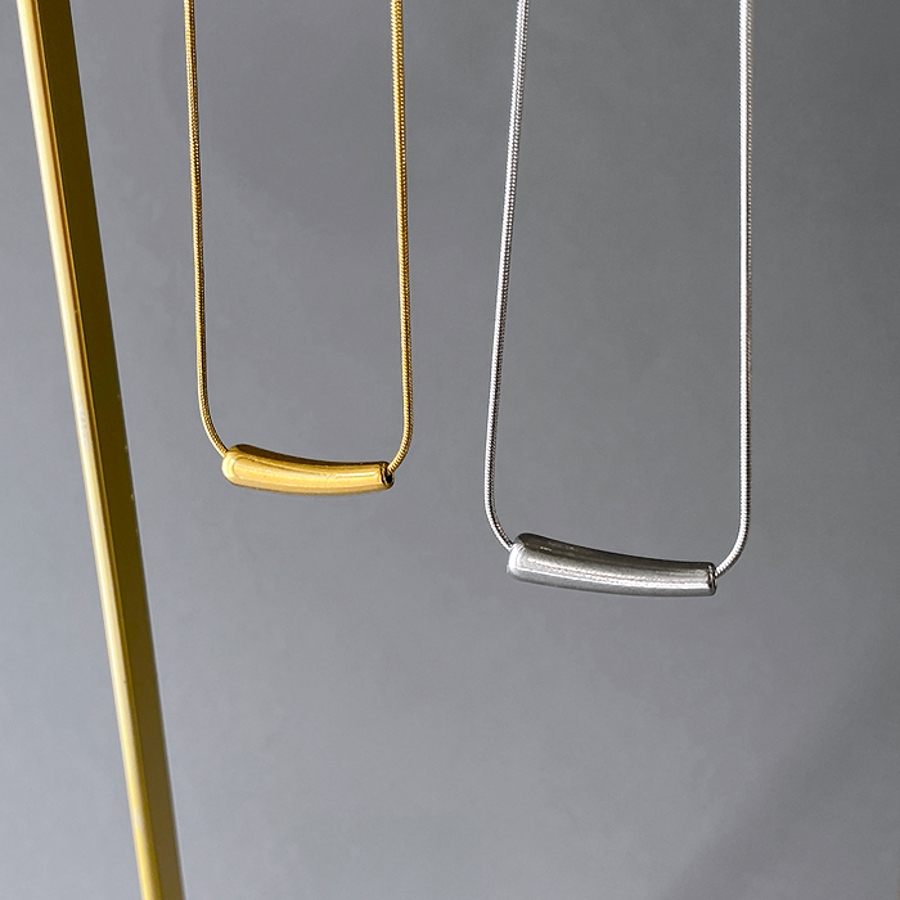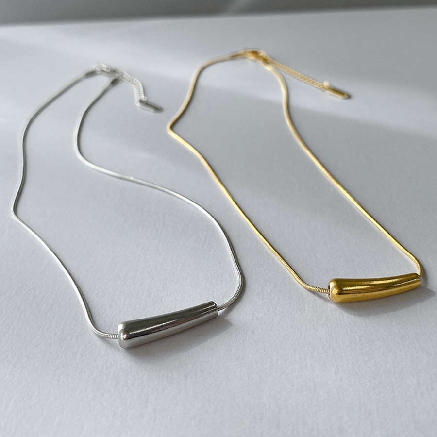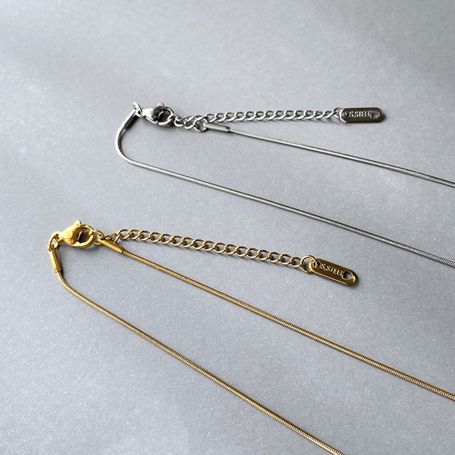 しなやかで流れるようなスネークチェーンとアシンメトリーなトップメタルの輝きが、コーデをクラスアップします◎