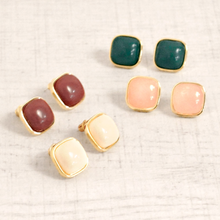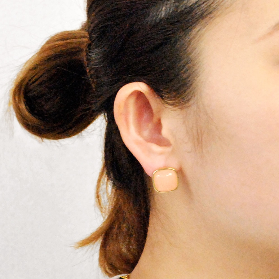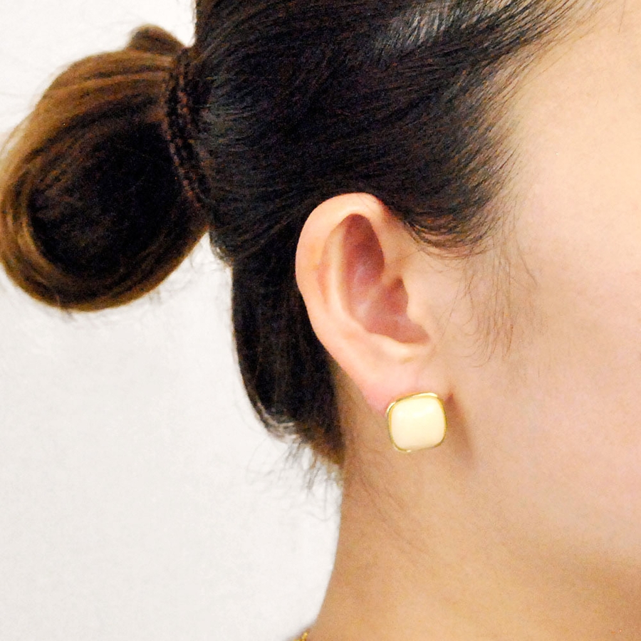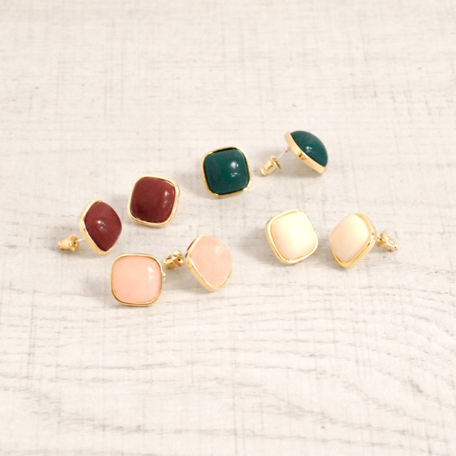 モード感あるふっくらスクエアデザインのカラージュエルピアス♪