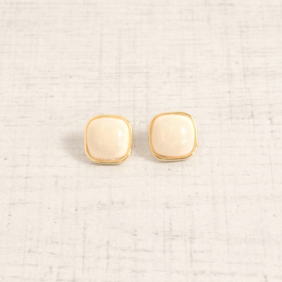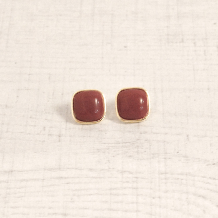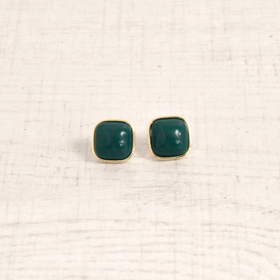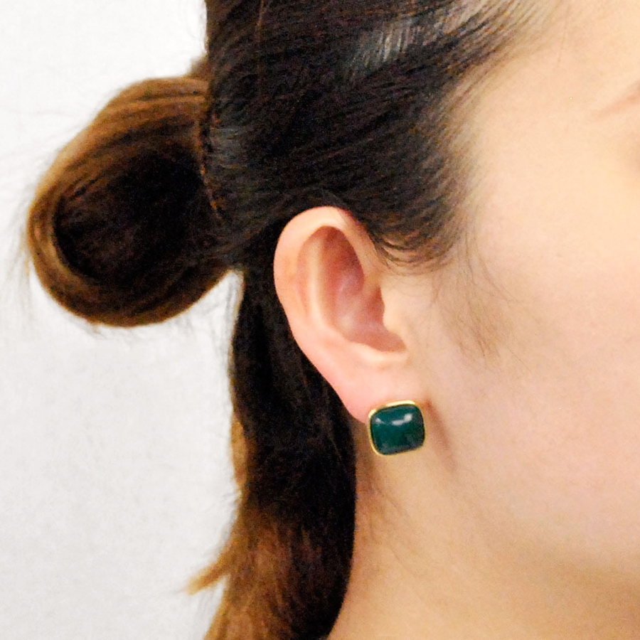モード感あるふっくらスクエアデザインのカラージュエルピアス♪