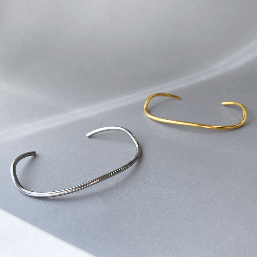 ニュアンスカーブラインステンレスブレスレット サージカルステンレス バングルシル…