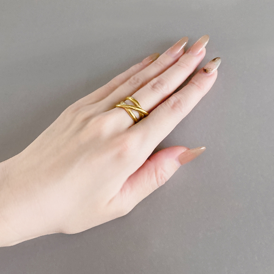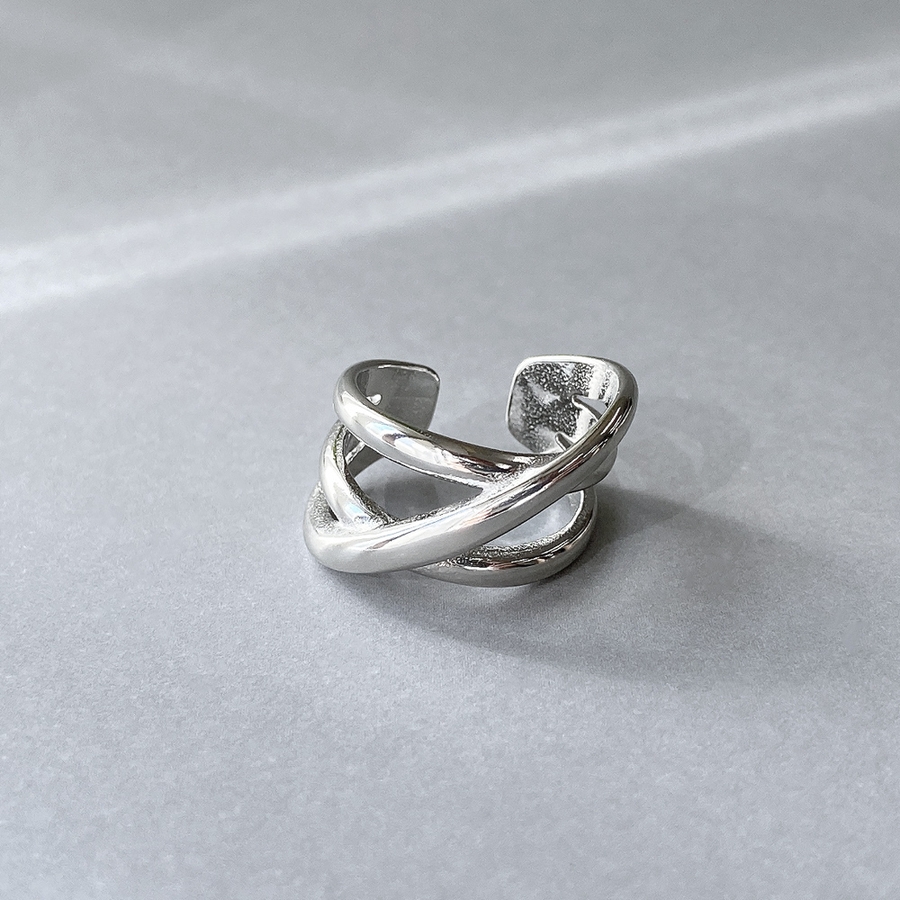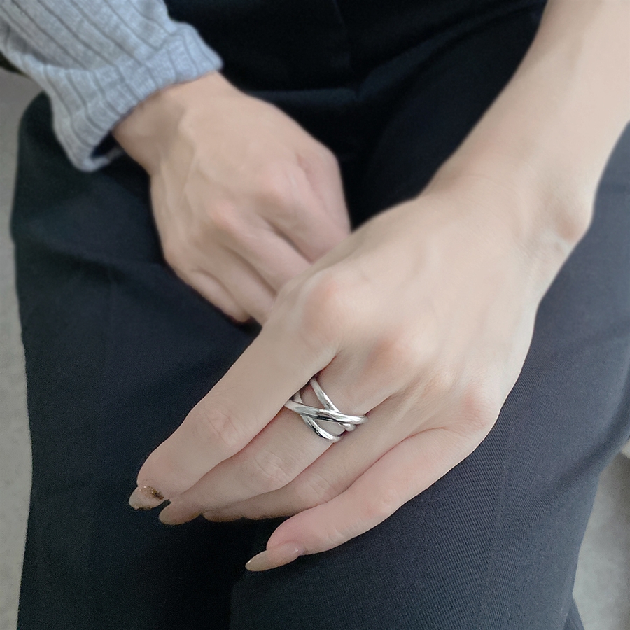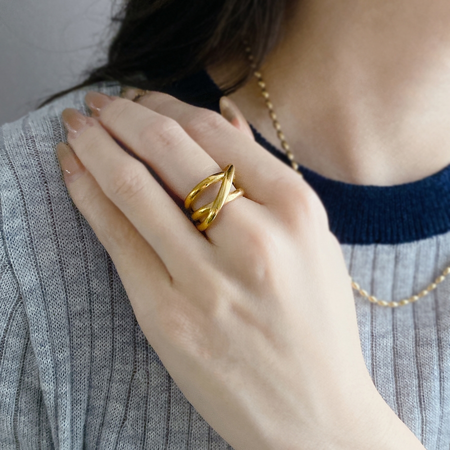 ボリュームクロスラインステンレスメタルリング 金属アレルギー つけっぱなし