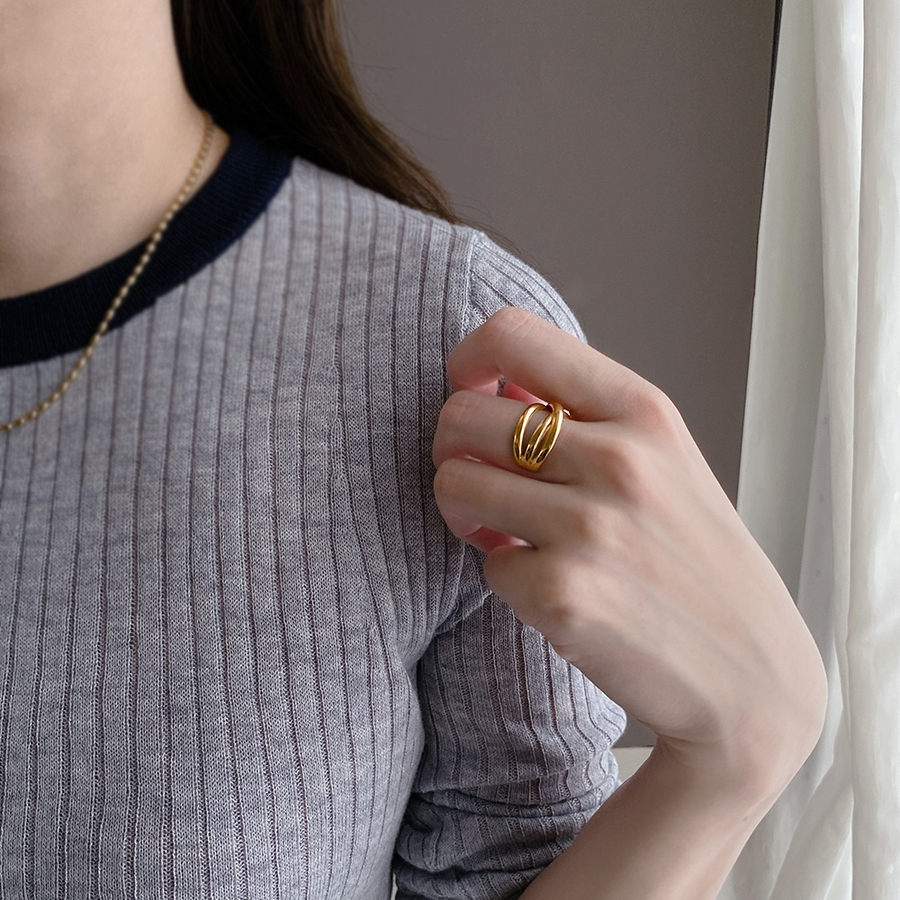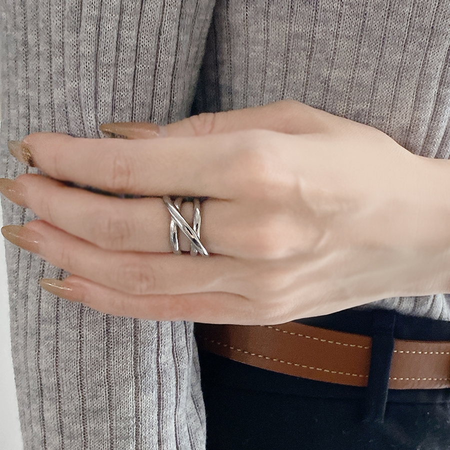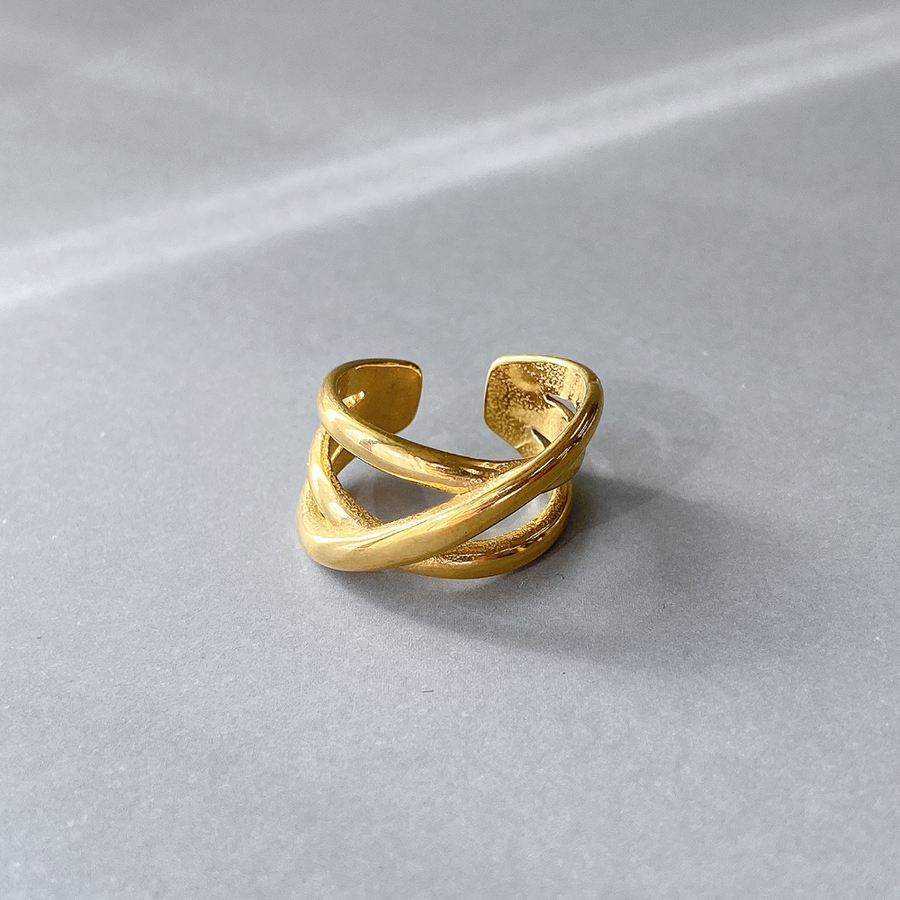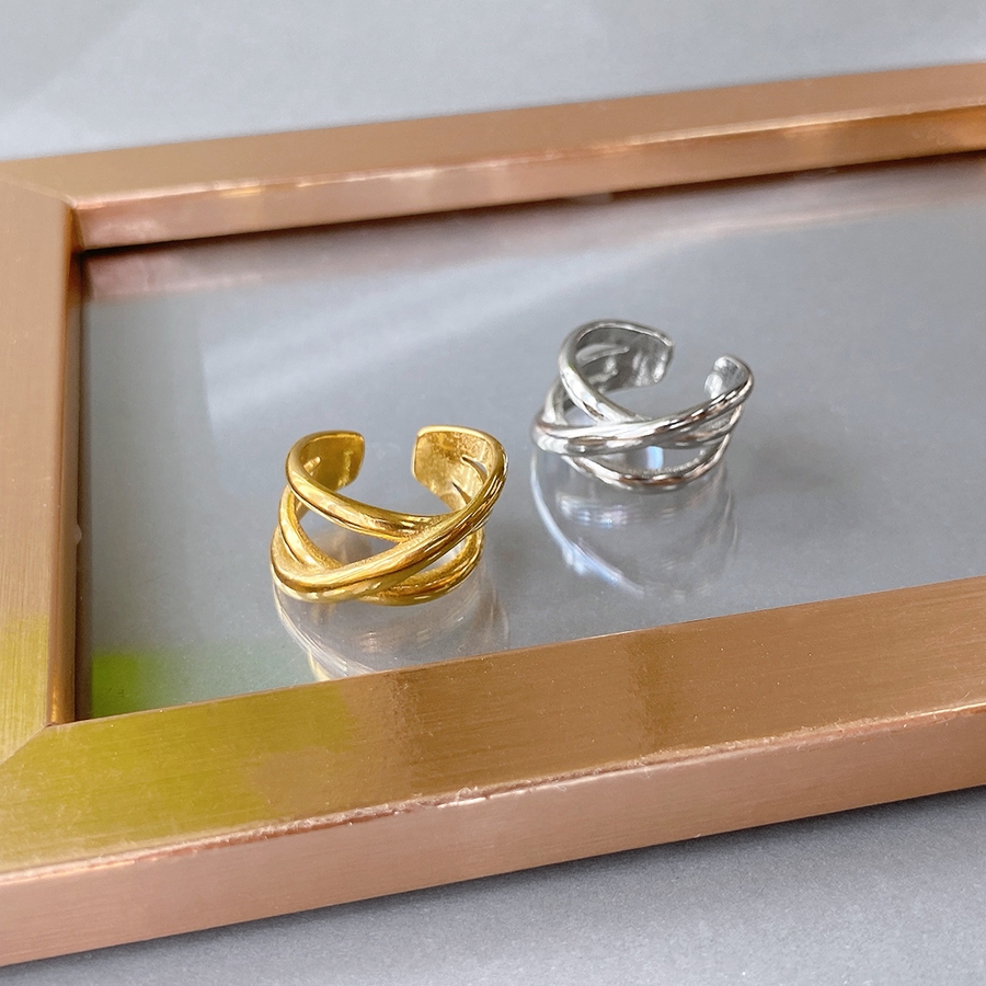 ボリュームクロスラインステンレスメタルリング 金属アレルギー つけっぱなし