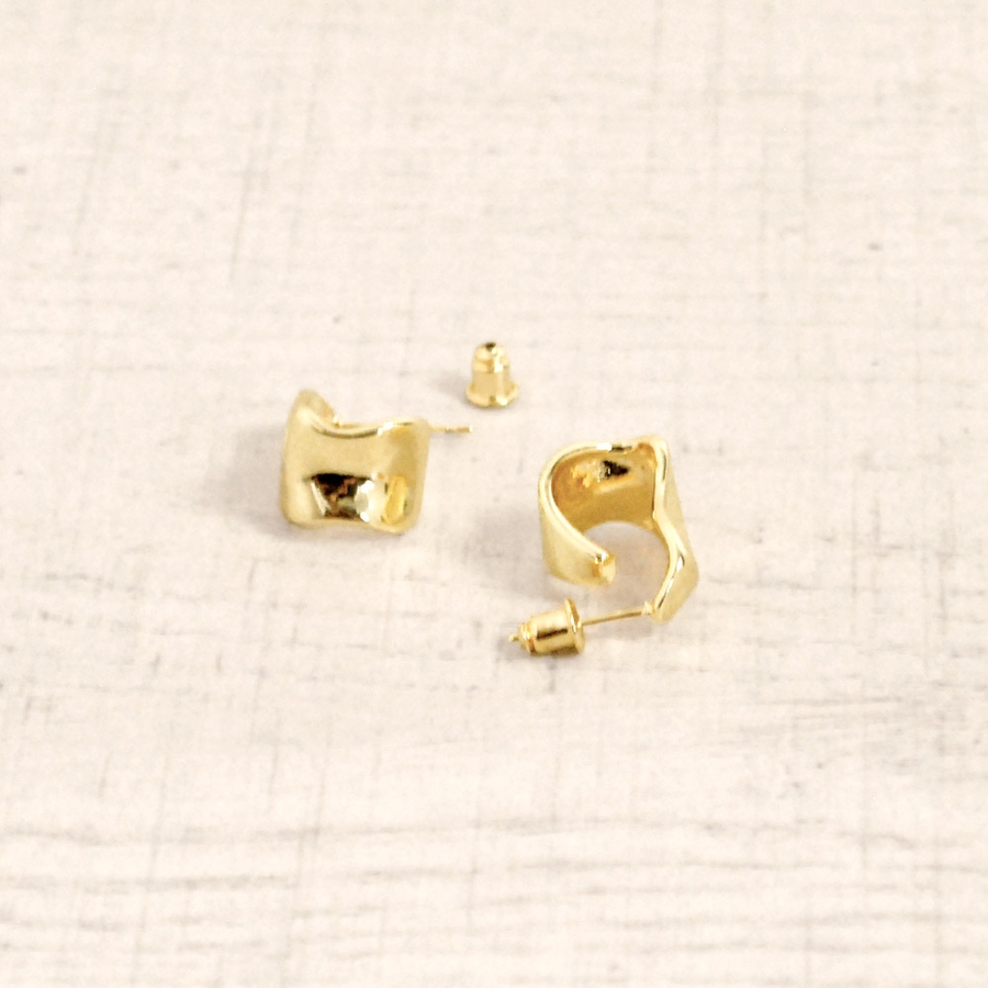 エンボスメタルワイドフープピアス 変形シルバーゴールドプチプラ