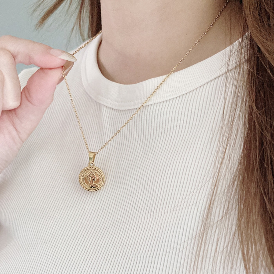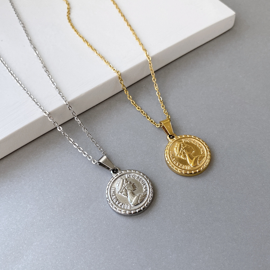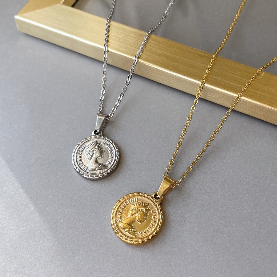 英国女王をイメージしたモチーフのステンレス製メダルペンダントネックレス♪