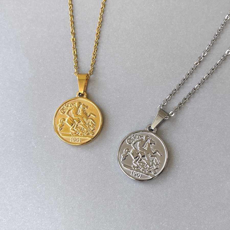 英国メダルコインステンレスネックレス ペンダントサージカルステンレス