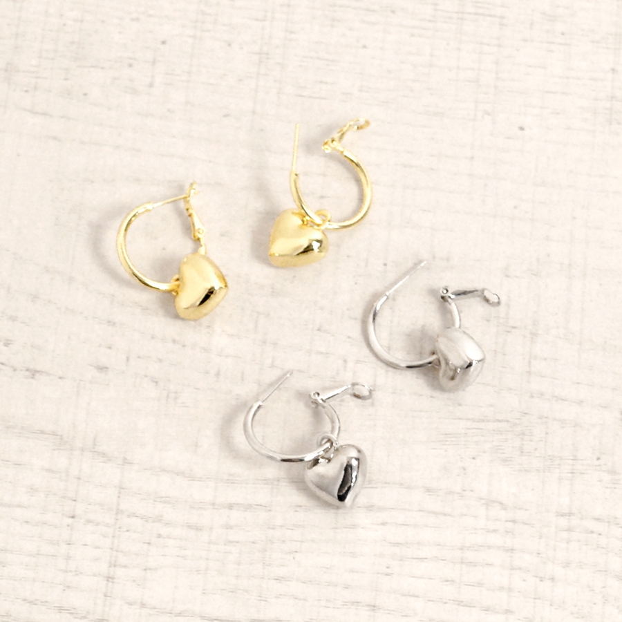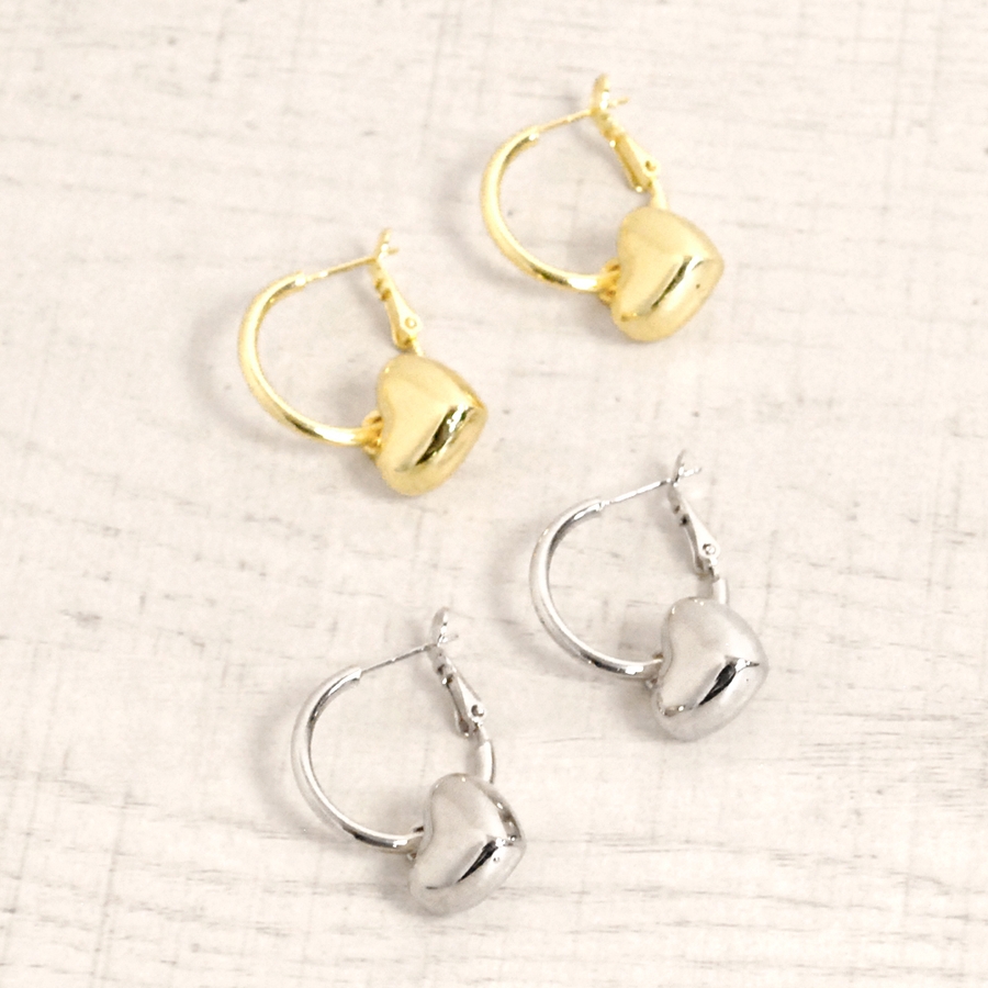 プランプメタルハートフープピアス シルバーゴールドレディース