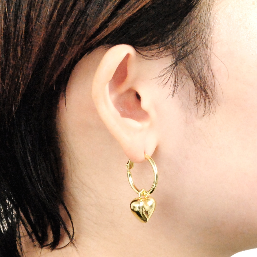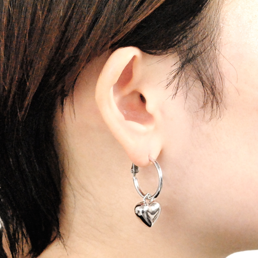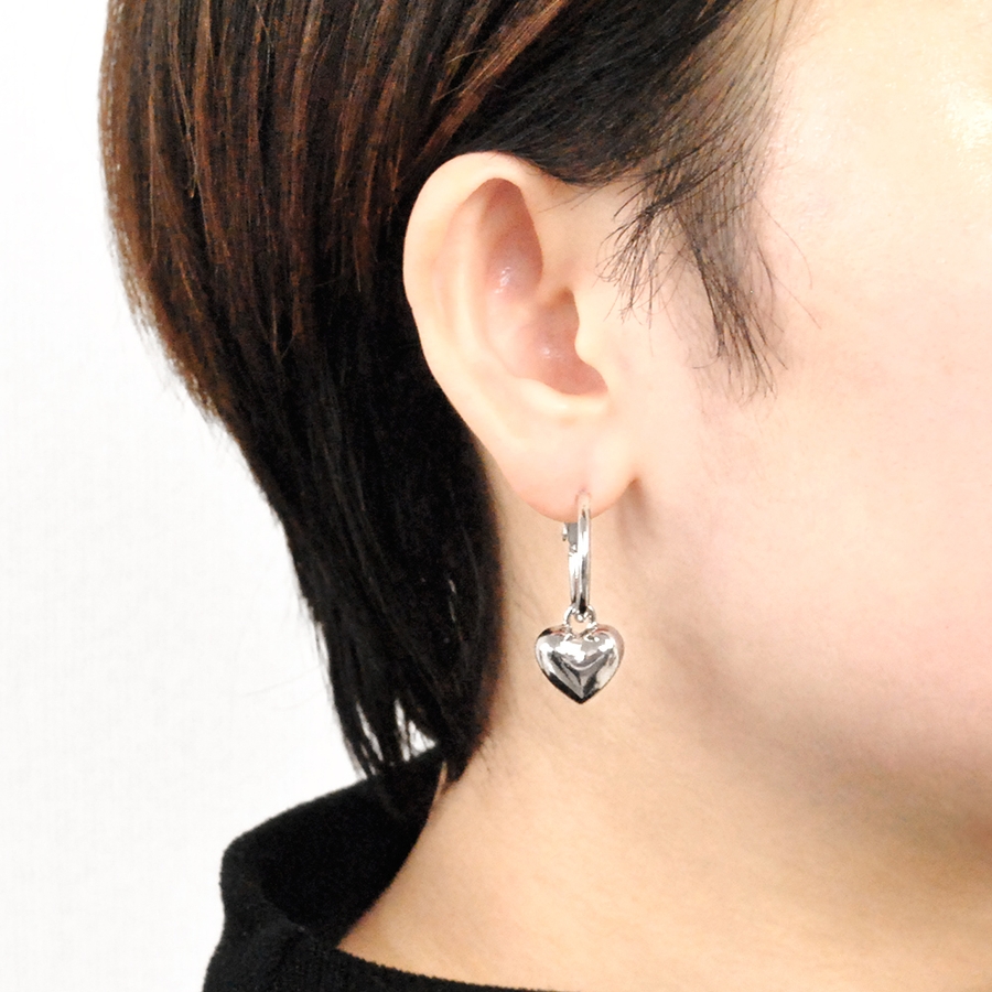 動くたびに耳元で揺れる可愛らしいハートが、顏周りにフェミニンな印象を添えてくれます。