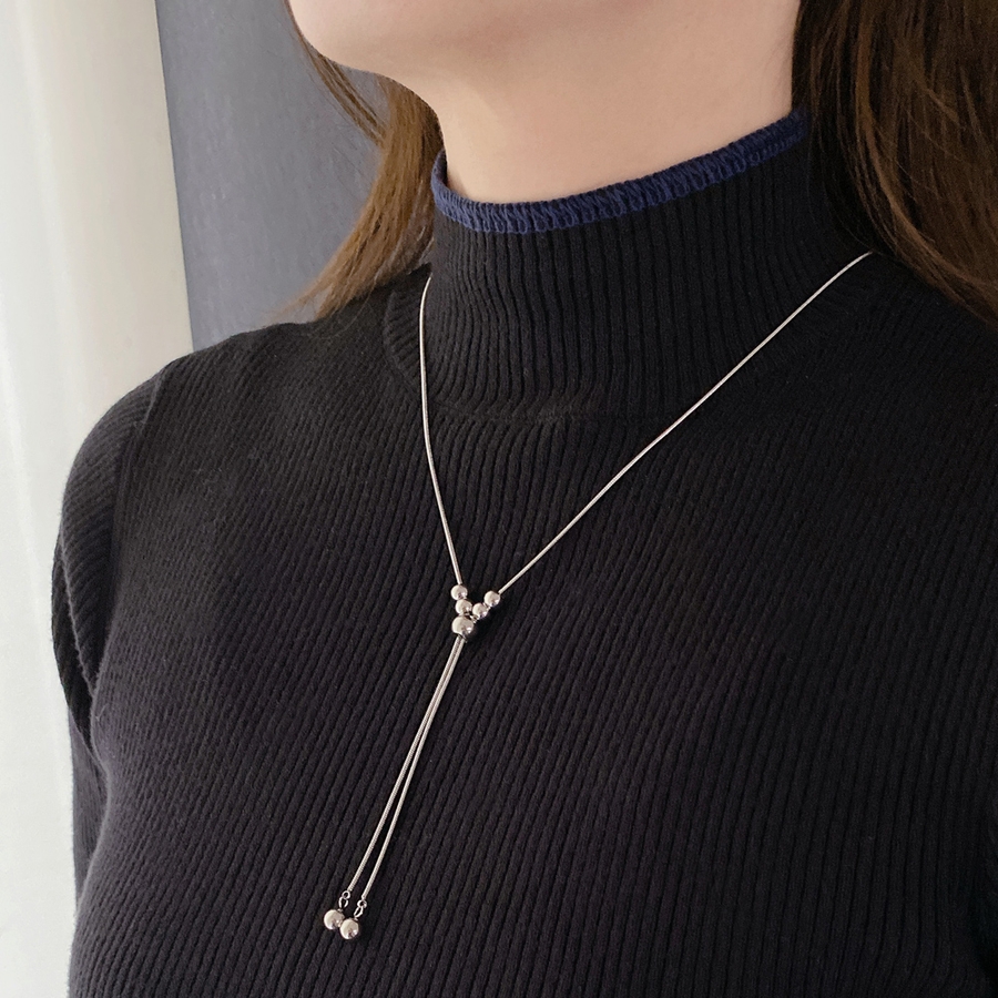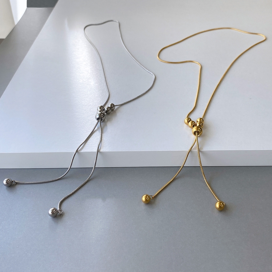 Y字ボールステンレスロングネックレス サージカルステンレス316Lラリエット