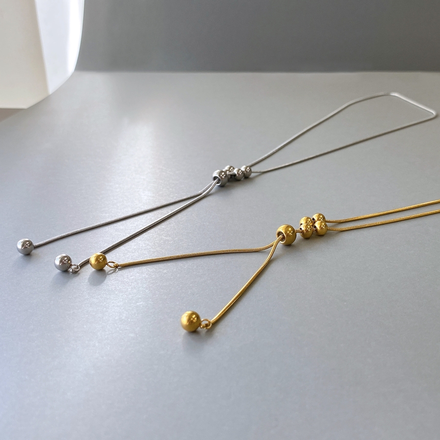 すっきりとしたY字デザインチェーンは縦長ラインを作り出し、スタイルアップにも活躍してくれます。