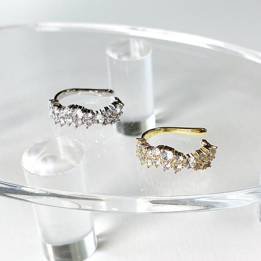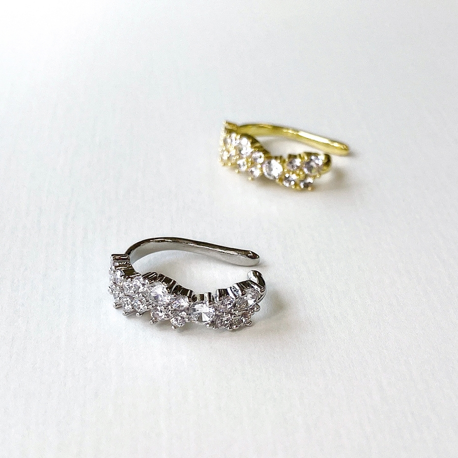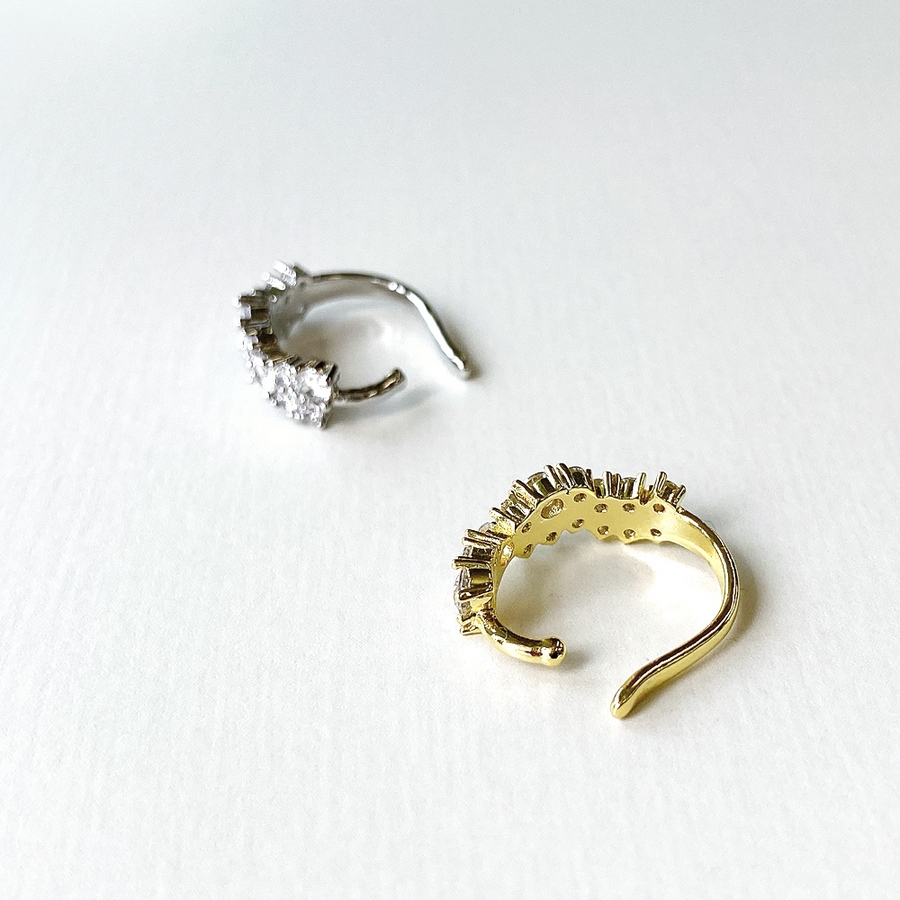 フープ状に連なるジルコニアがキラリと輝くイヤーカフ。