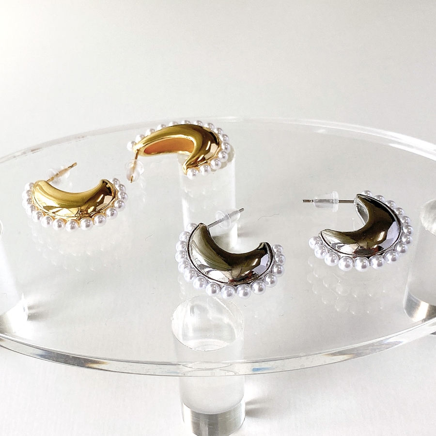 ムーンパールラインフープピアス レディースシルバーゴールド入学式結婚式