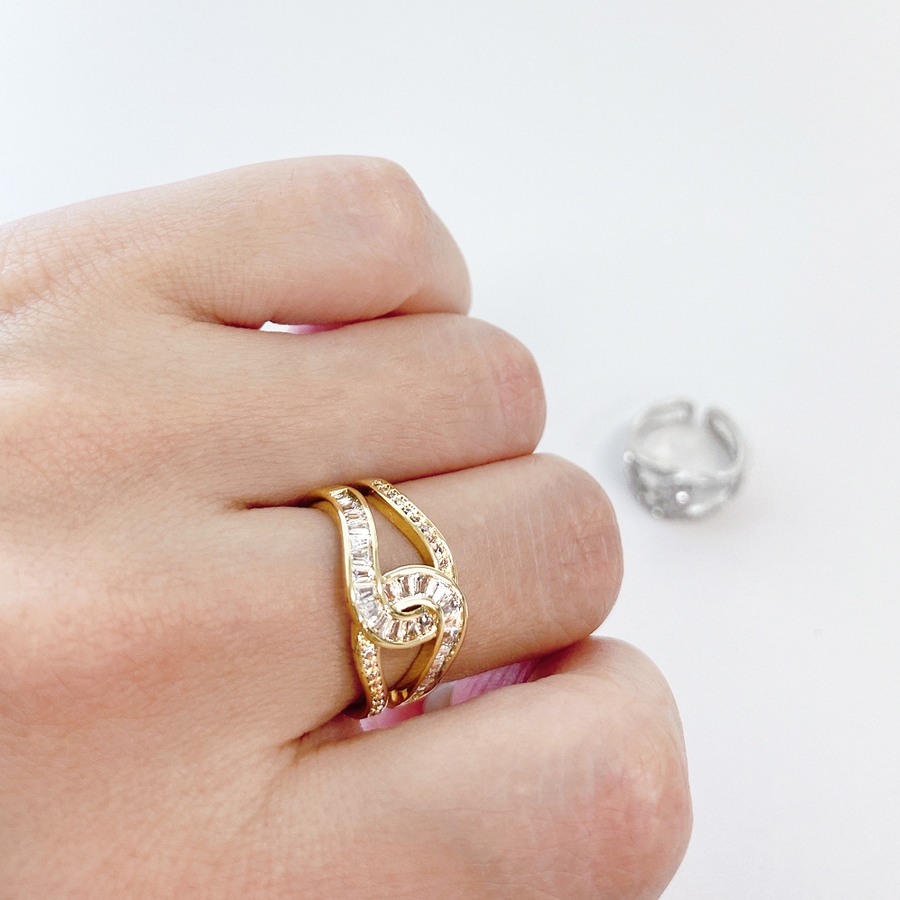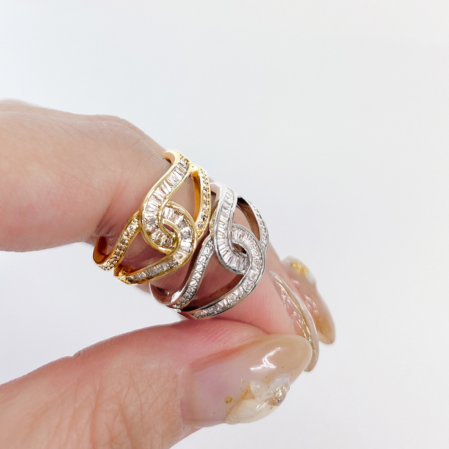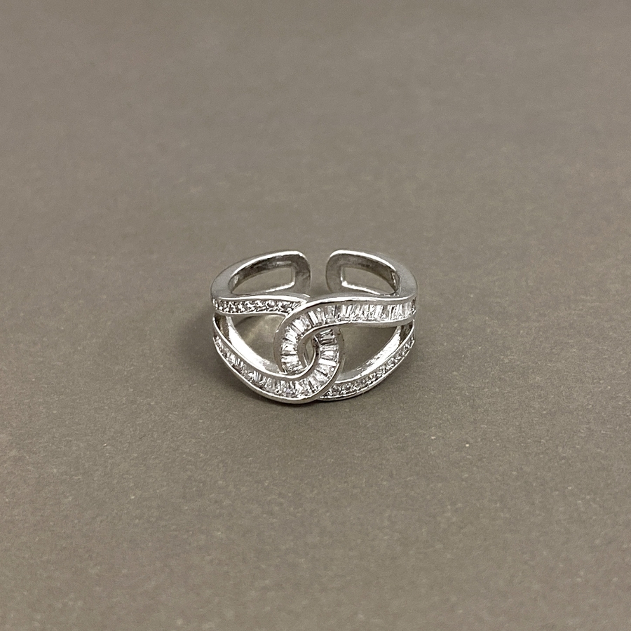 ストーン付C型クロスリング 指輪 ジルコニア レディース ノット