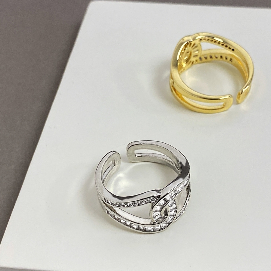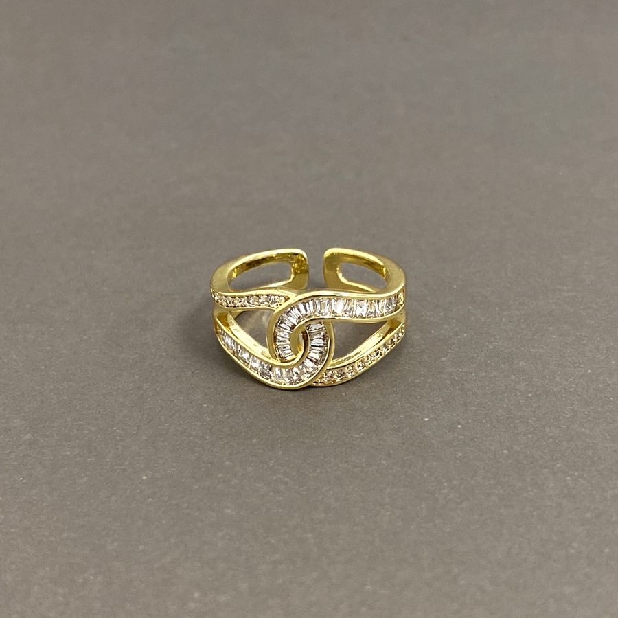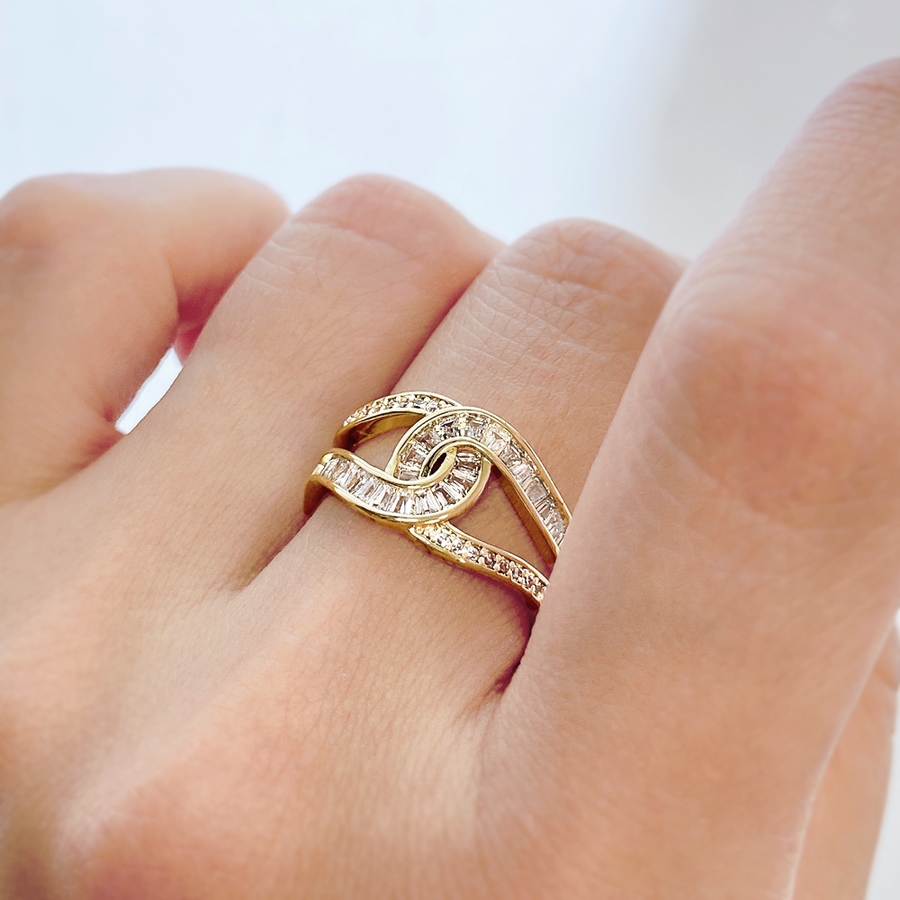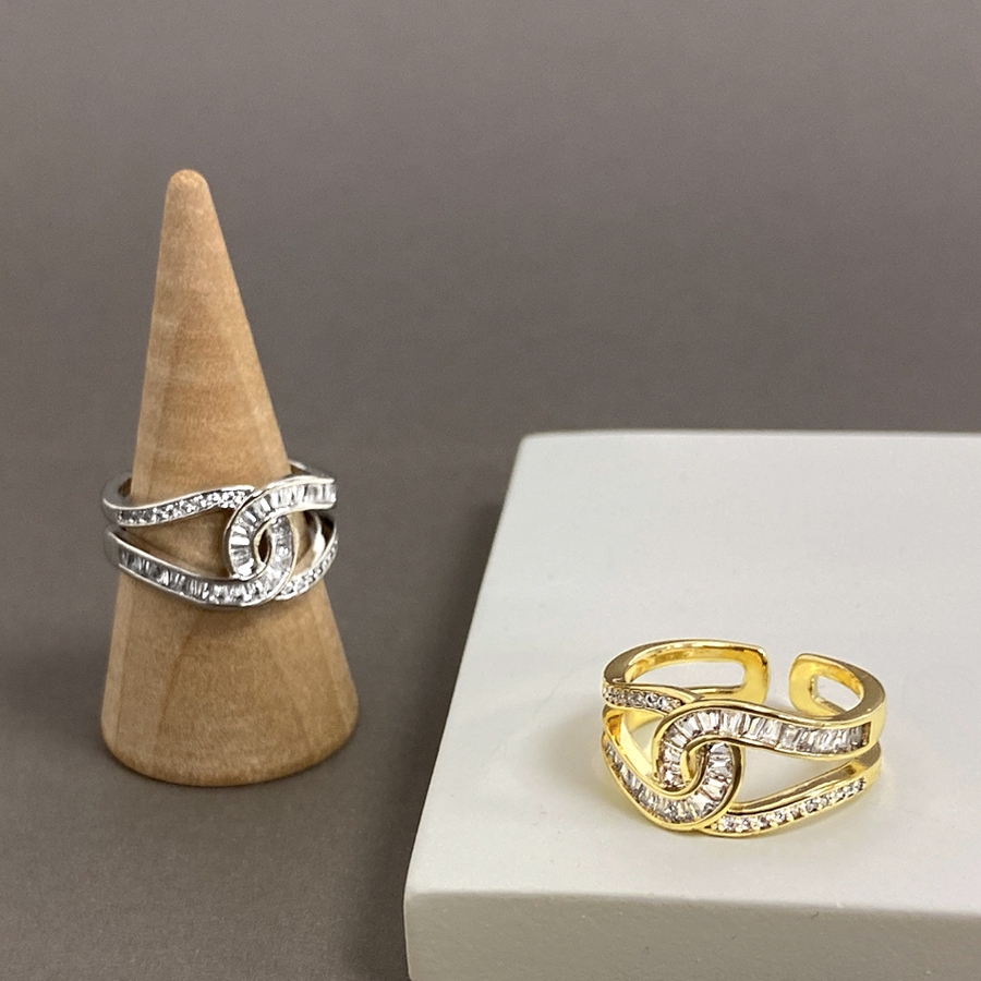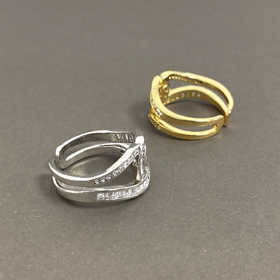 煌びやかなストーンの輝きと抜け感が優雅な印象を作るC型クロスリング。