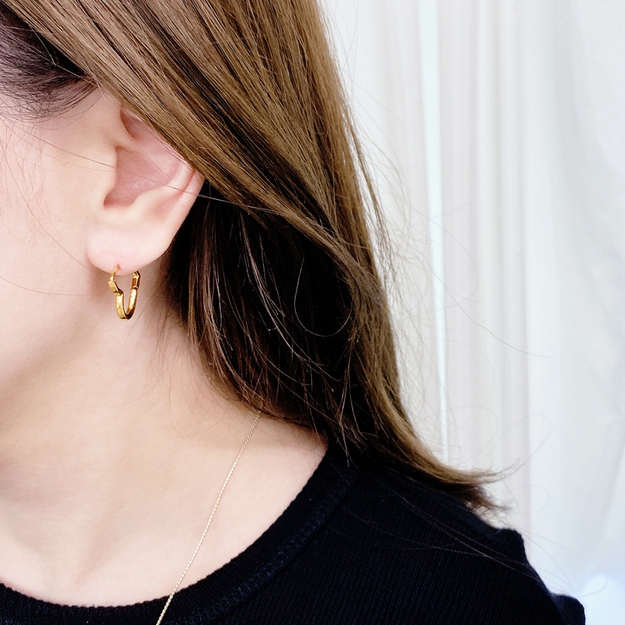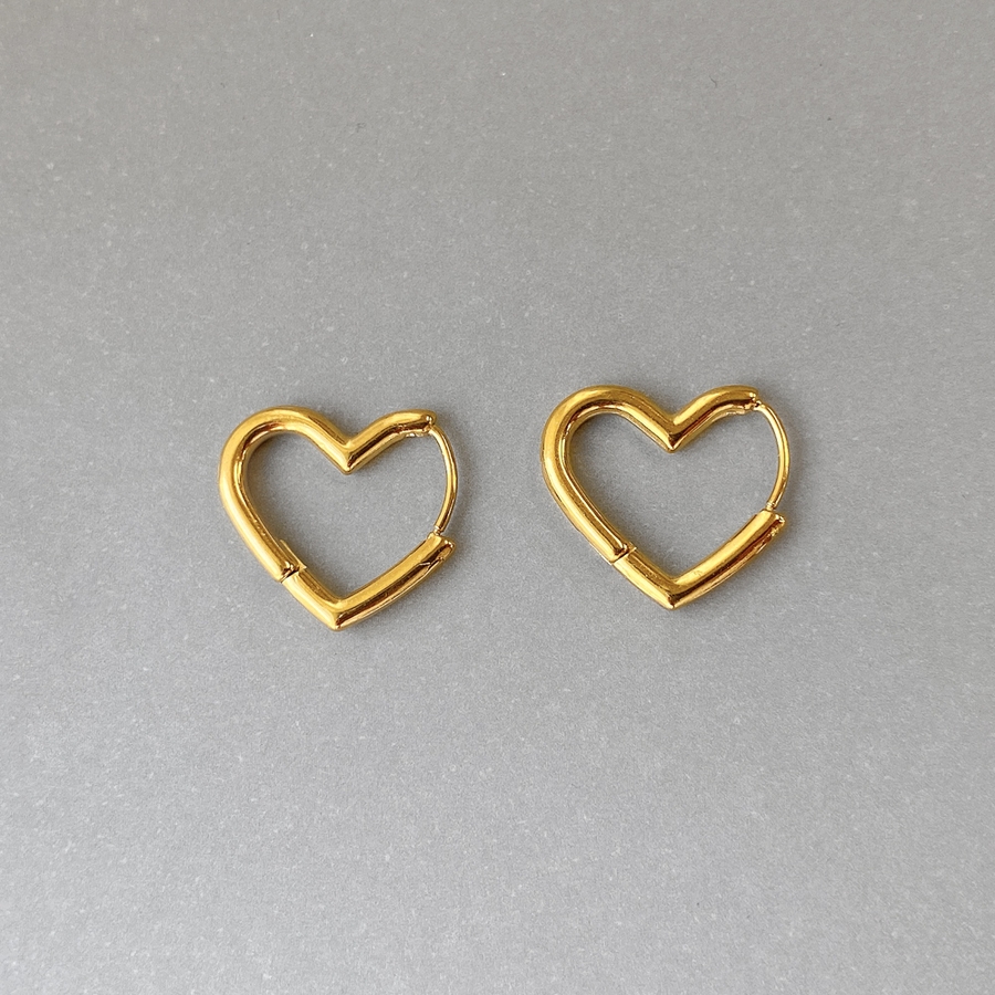 小ぶりで愛らしいステンレス製ハートフープピアス。