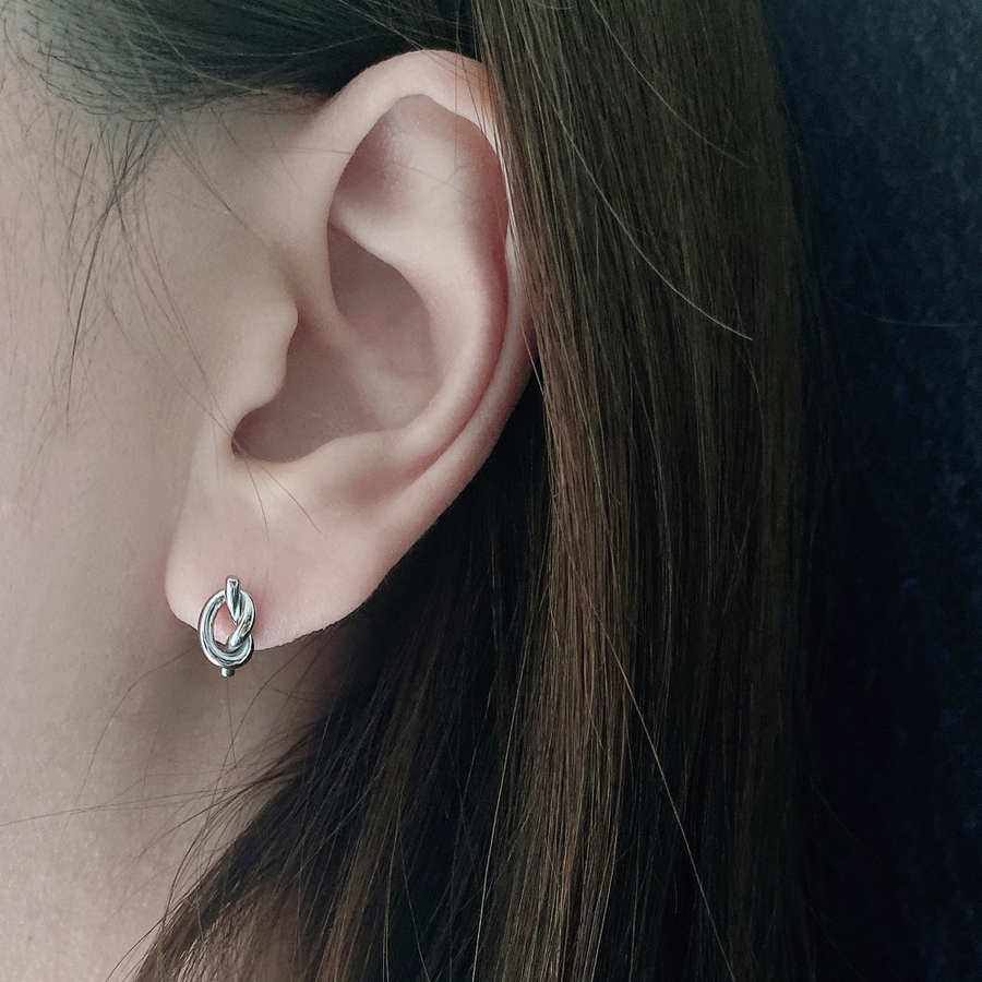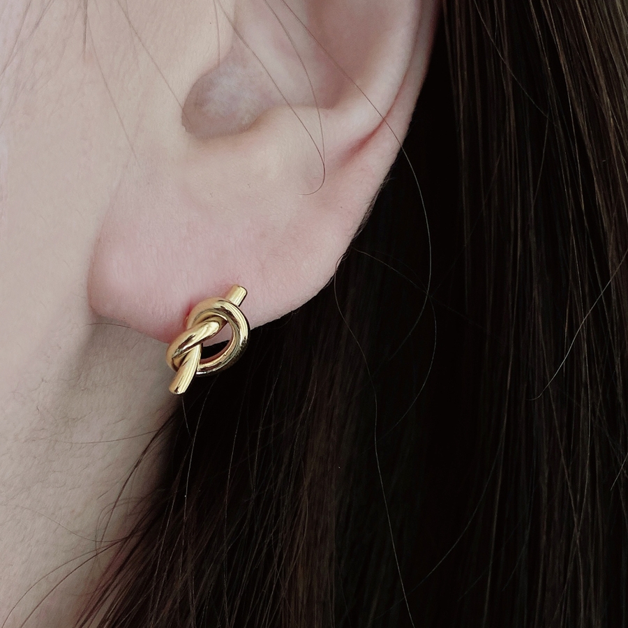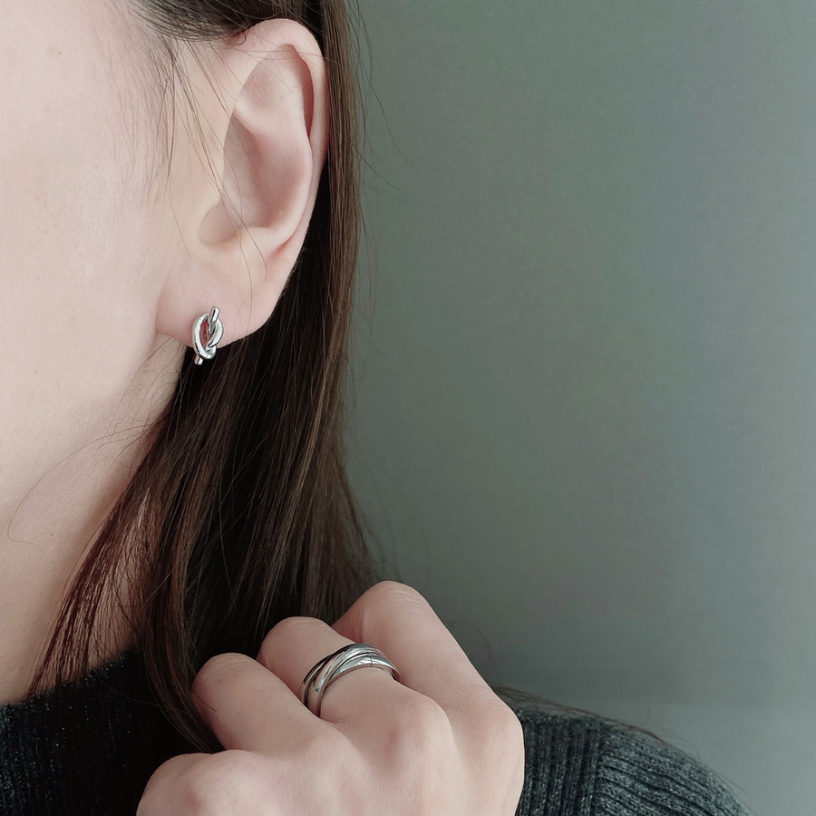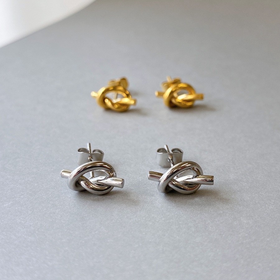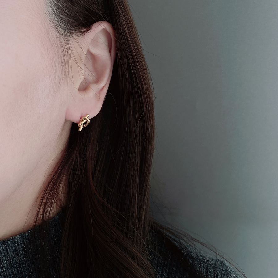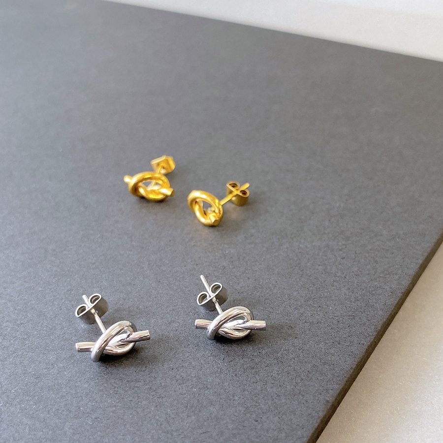 ツイストモチーフが程良いアクセントのステンレス製ノットピアス。