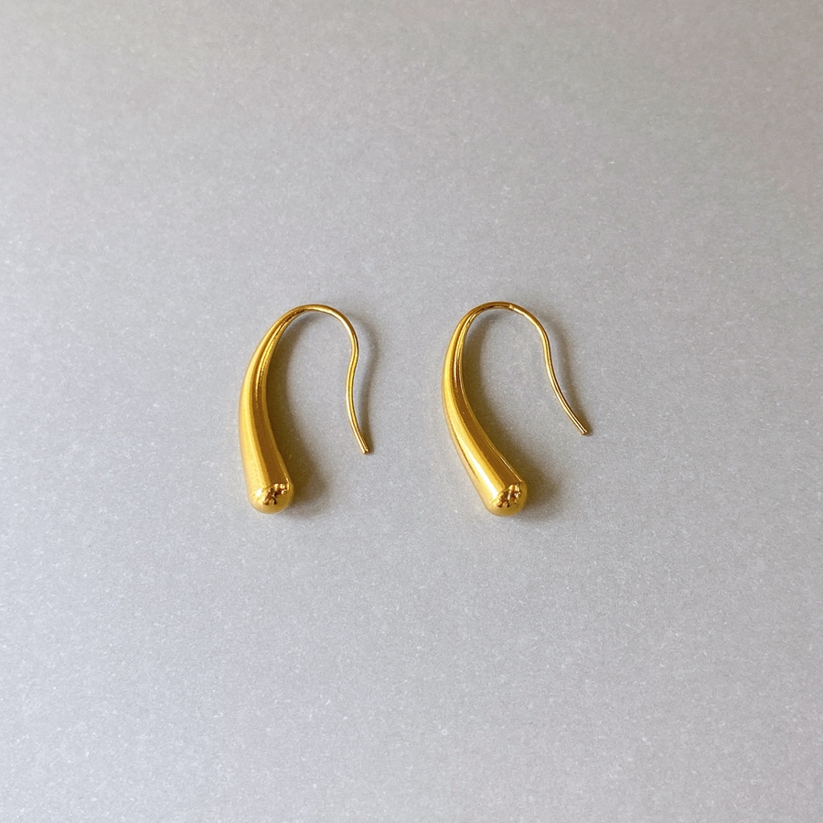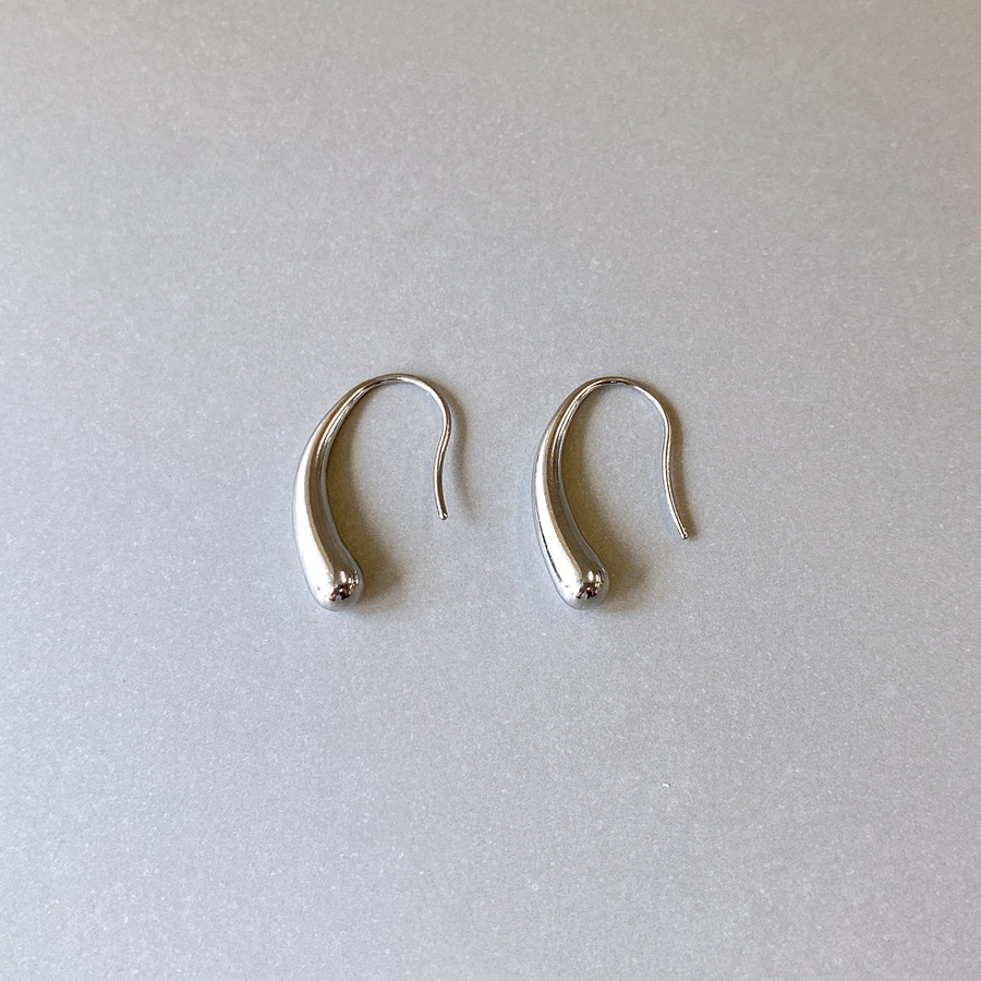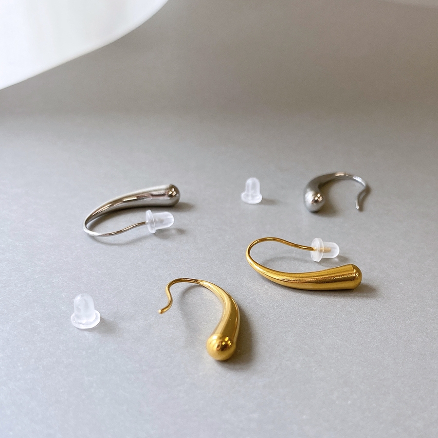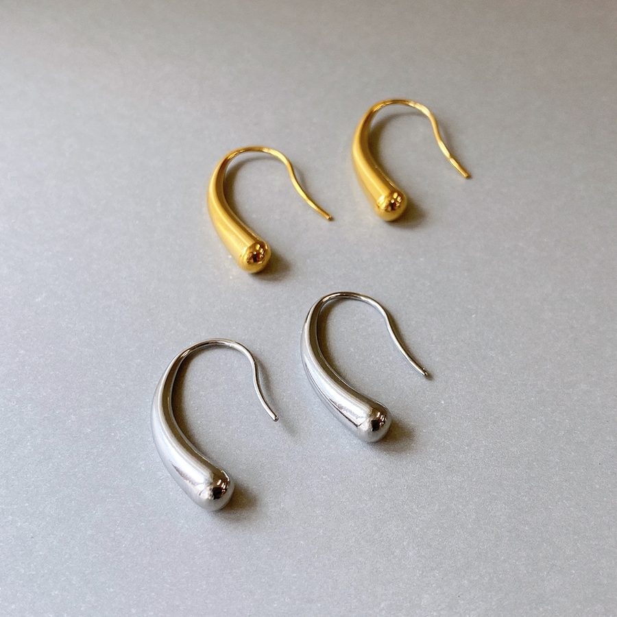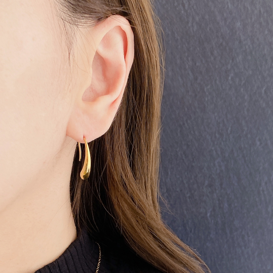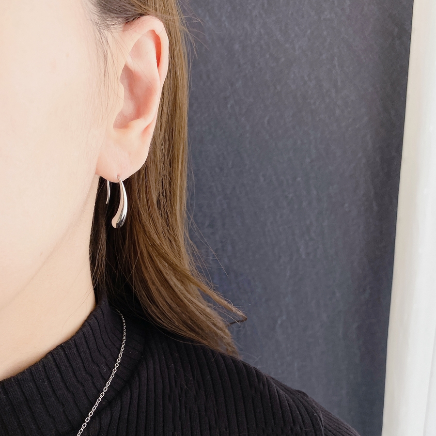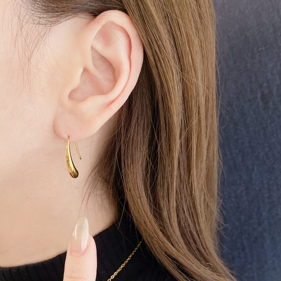 モード感あるメタルの光沢が美しい、ステンレス製ドロップフックピアス。