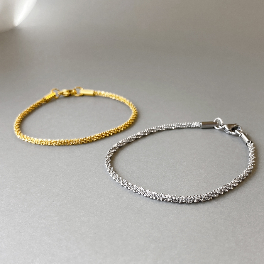 上品な輝きがおしゃれ感溢れる、グリッターチェーンブレスレット。