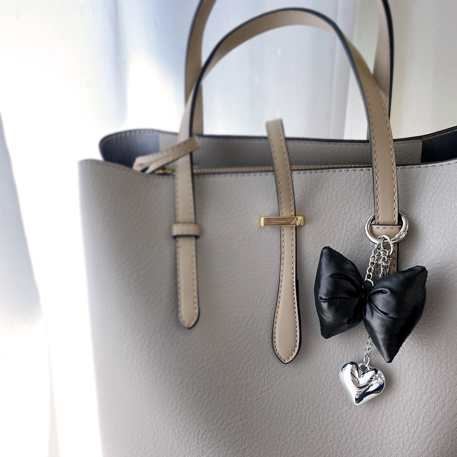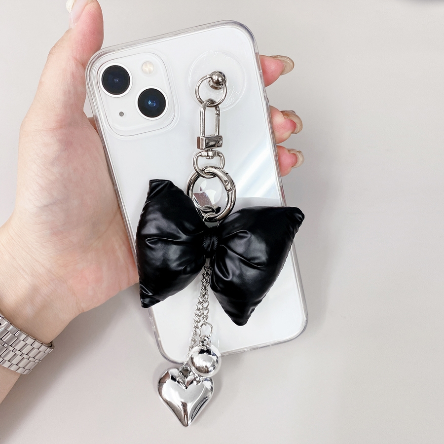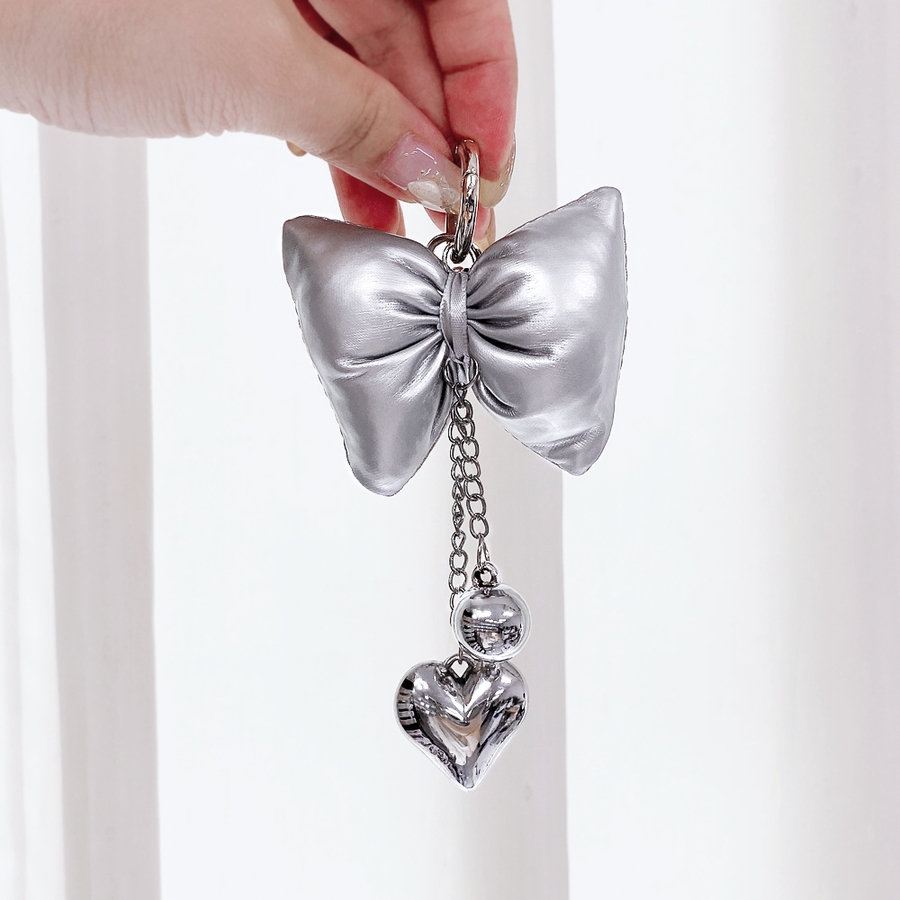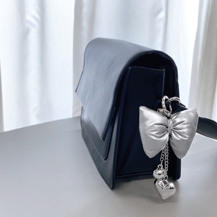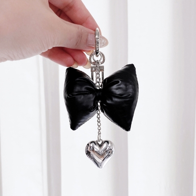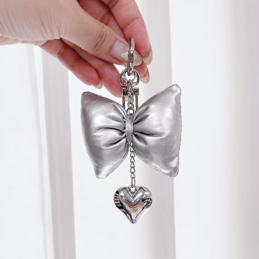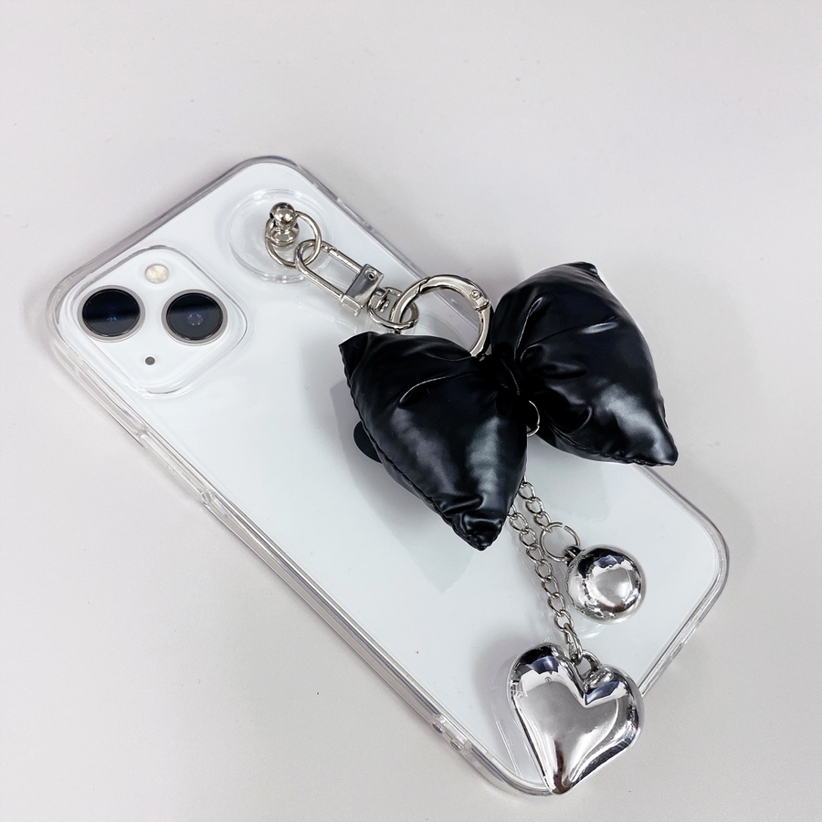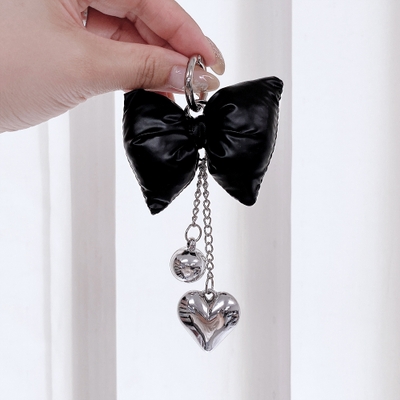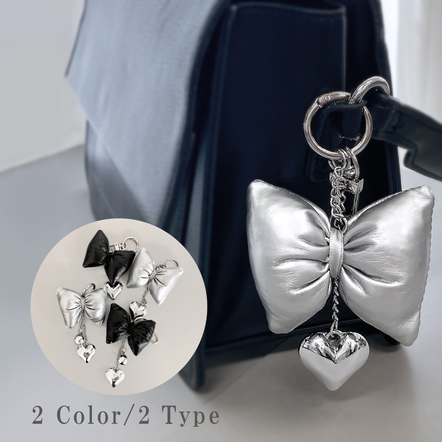 リボンクッションハートチェーンキーリング バッグチャーム キーホルダー
