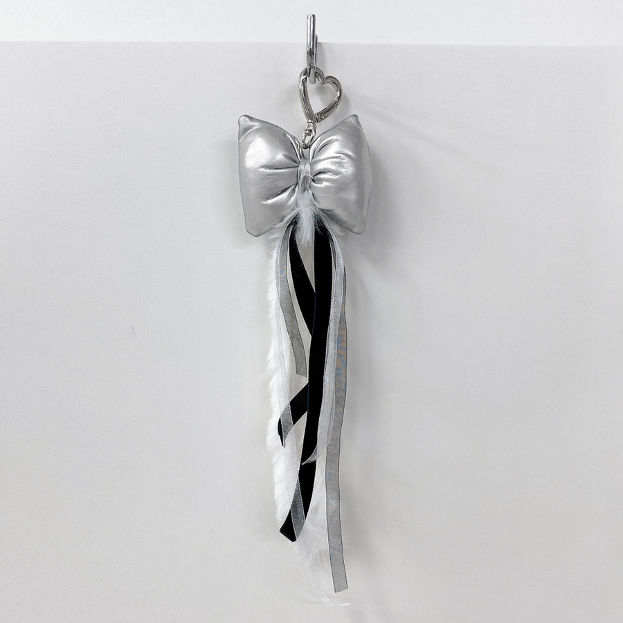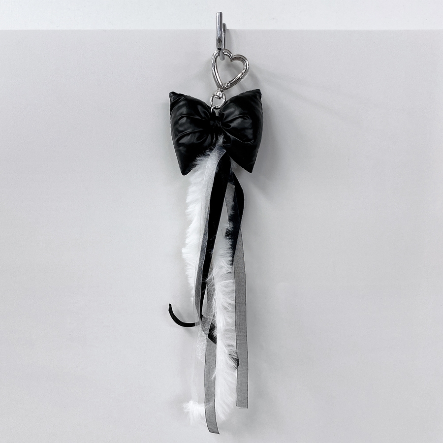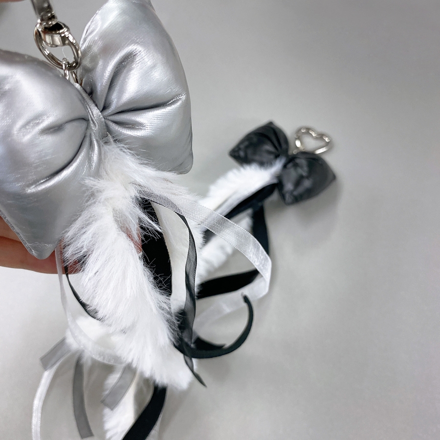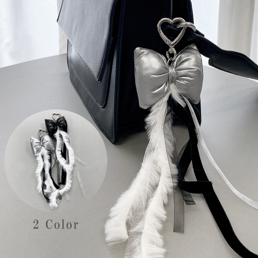 リボンクッション&ファーキーリング バッグチャーム キーホルダー ハンドメイド