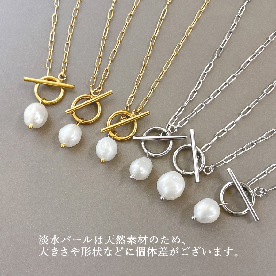 淡水パール&マンテルチェーンステンレスネックレス レディース 淡水真珠