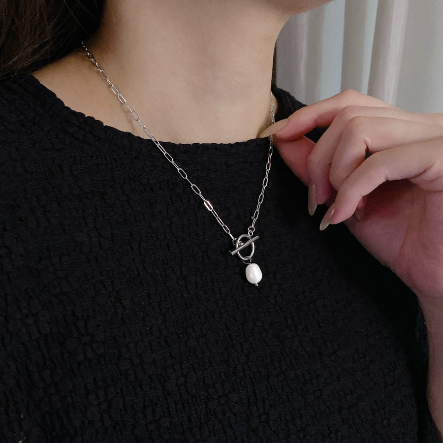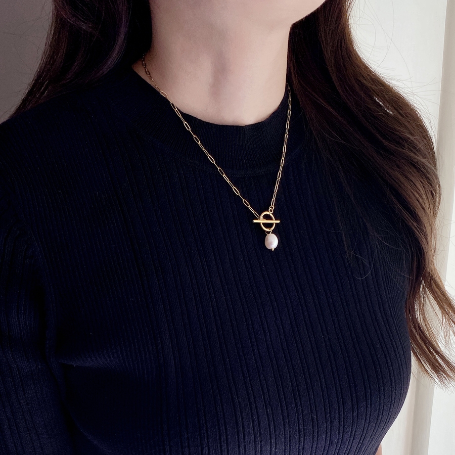 少しいびつな個性のあるパールは艶のある光を放ち、シンプルコーデのワンポイントになってくれます。