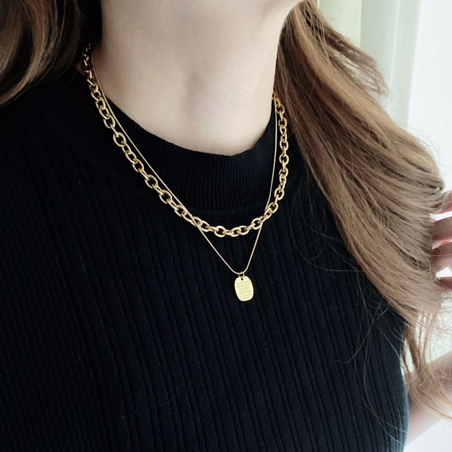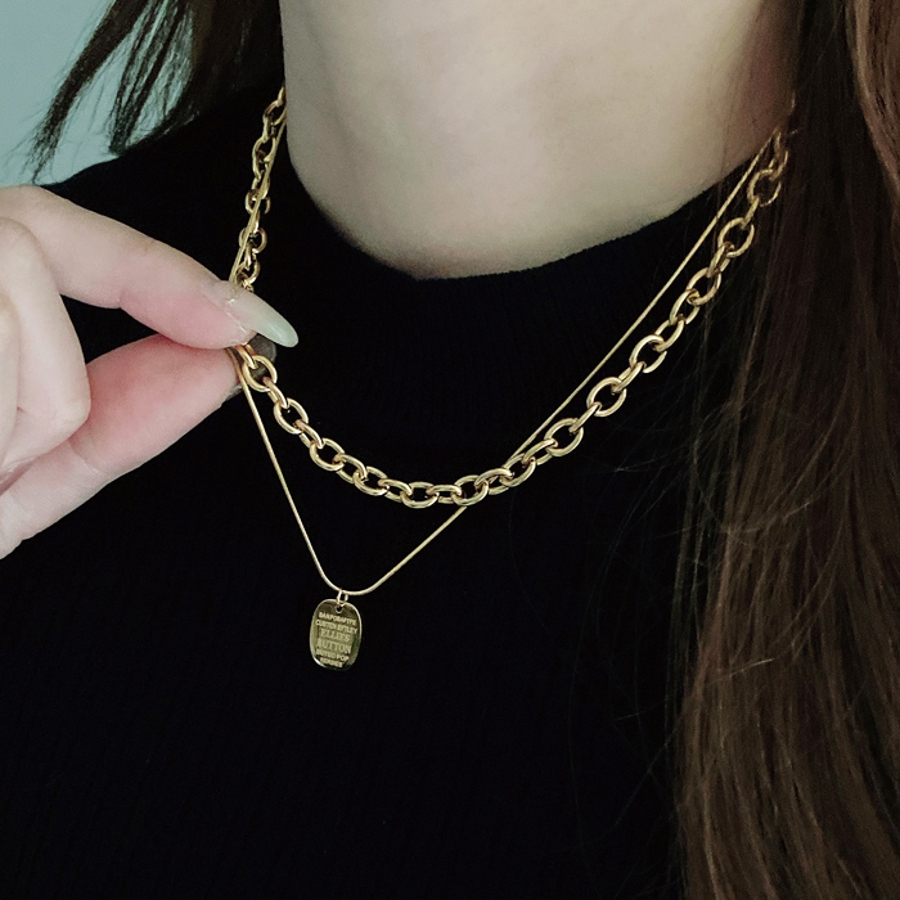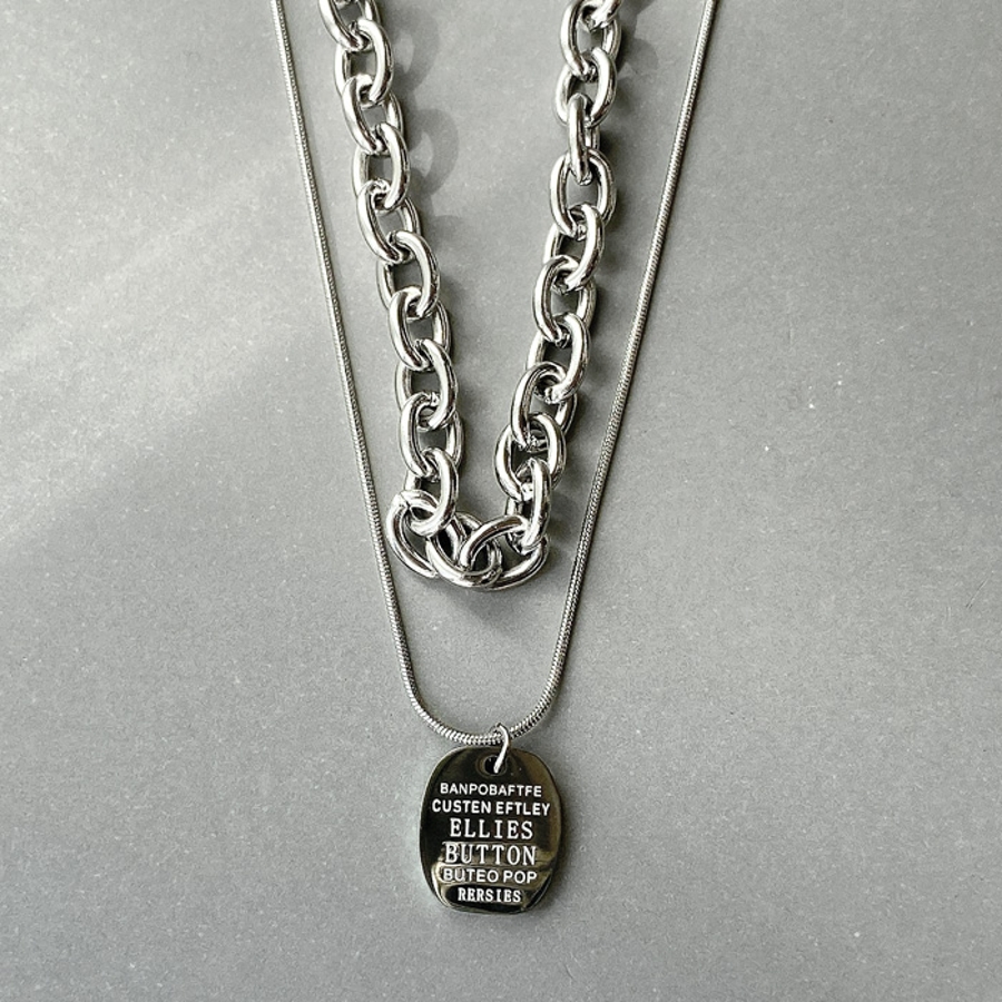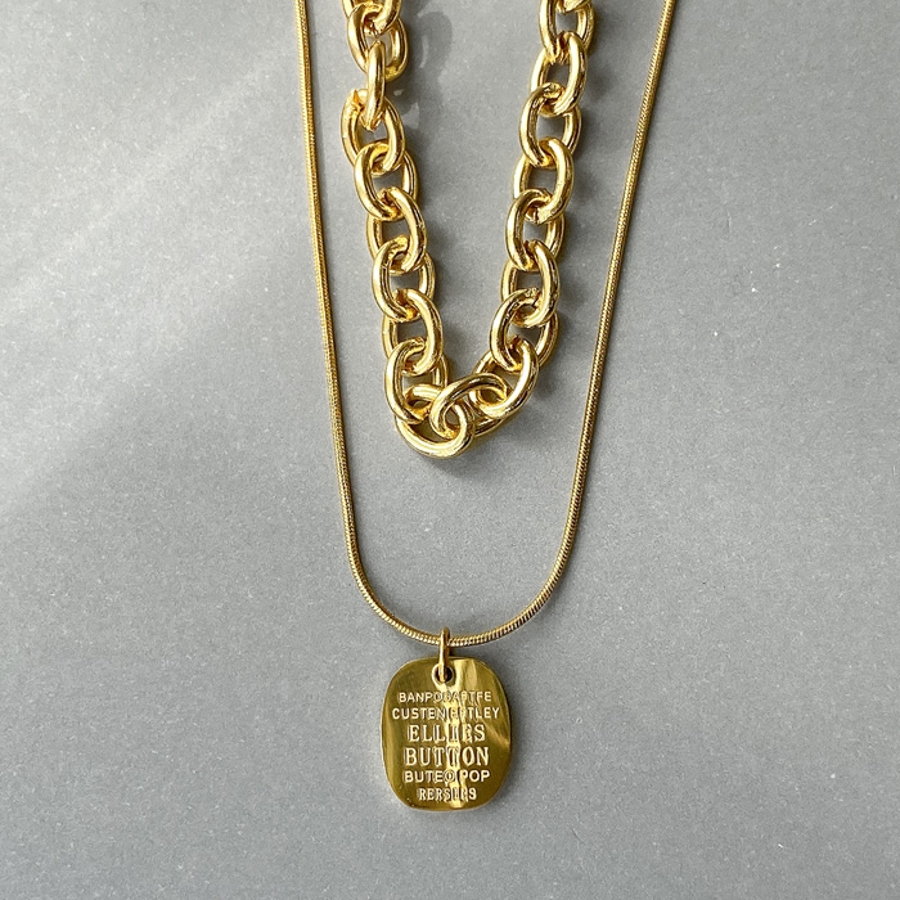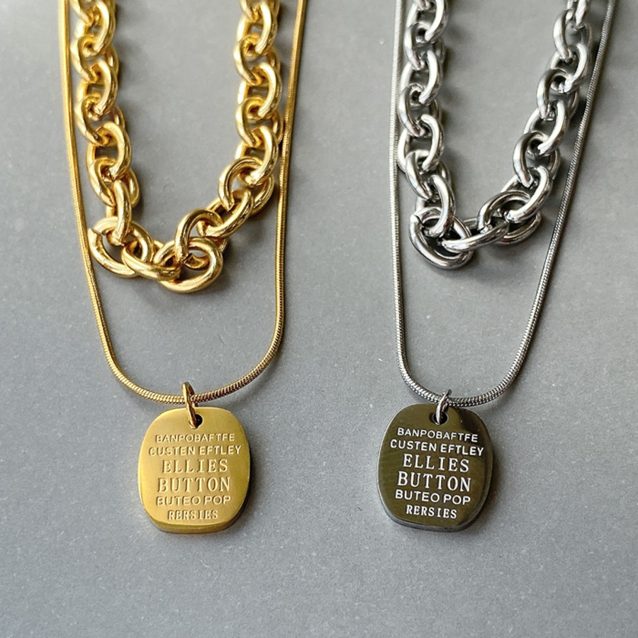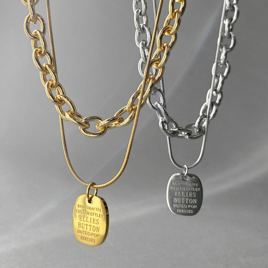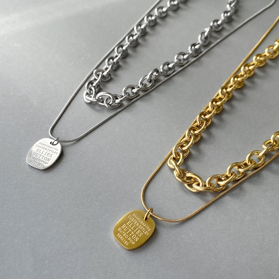 英字プレート2連ステンレスネックレス アレルギー対応 つけっぱなし