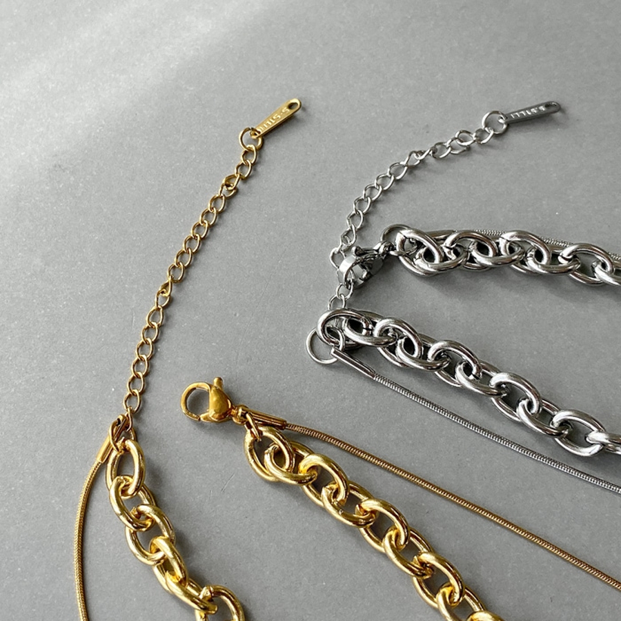 華やかで上品に決まる、ショートタイプの2連チェーンネックレス。