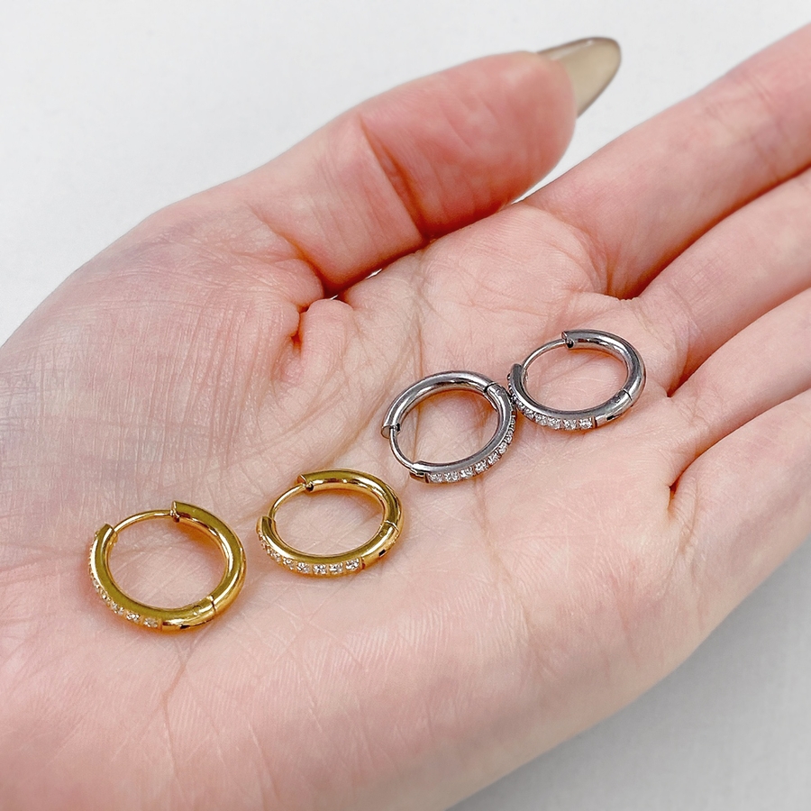 CZワンタッチステンレスフープピアス 両耳用 サージカルステンレス