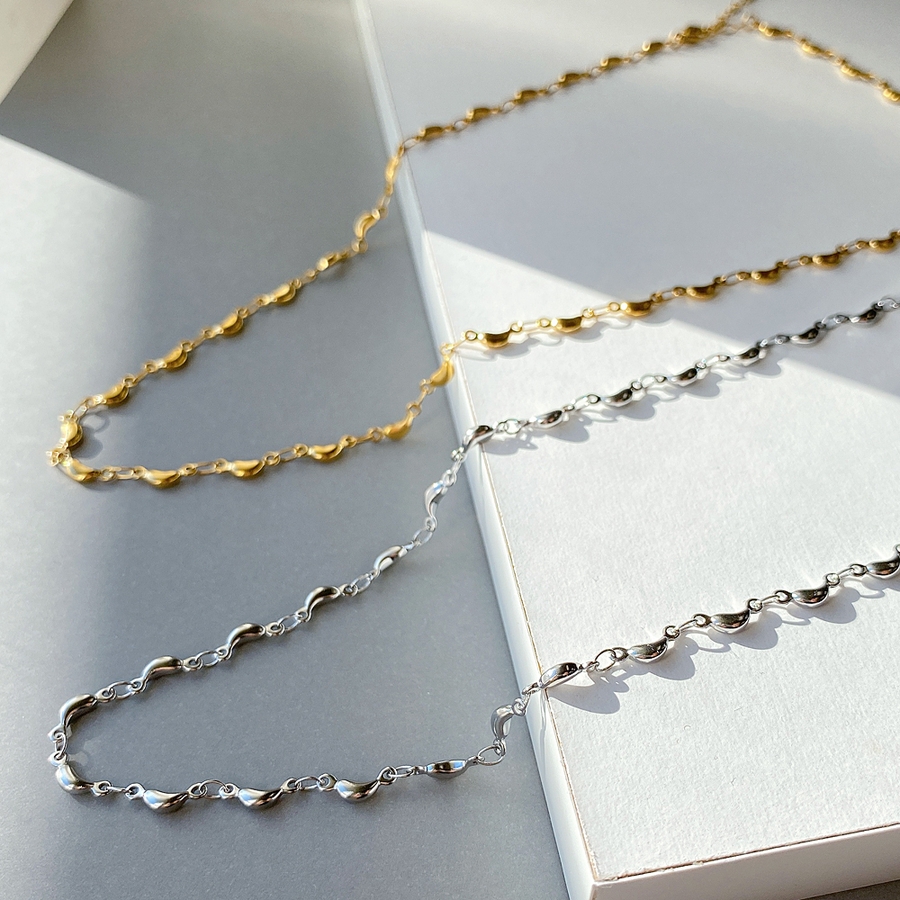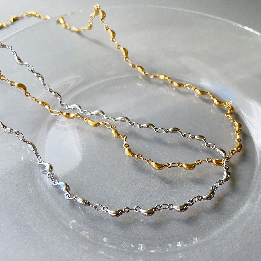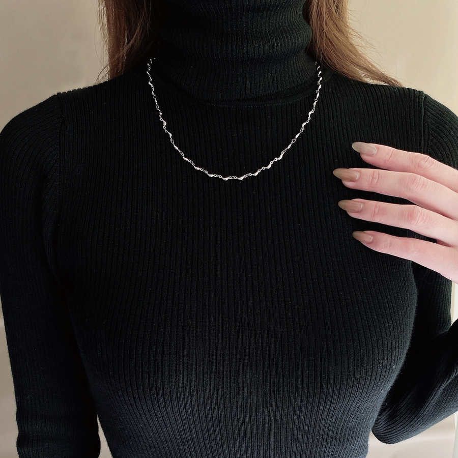 スタイリッシュでさりげない華やかさが魅力のビーンズチェーンチョーカーネックレス。
