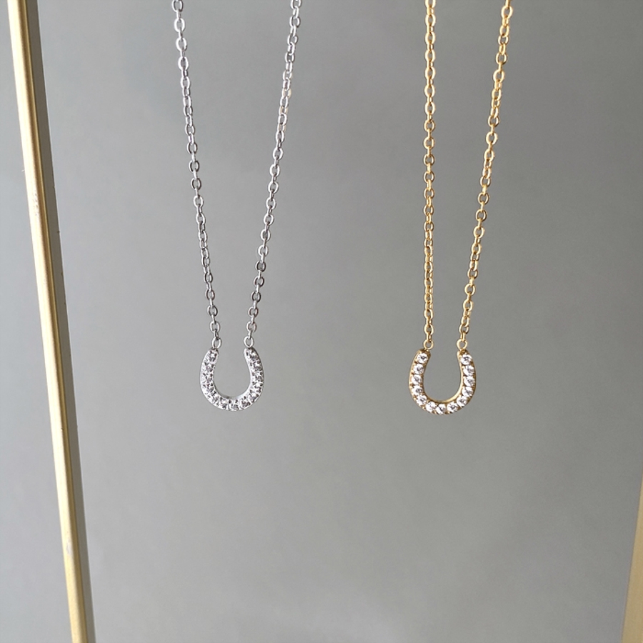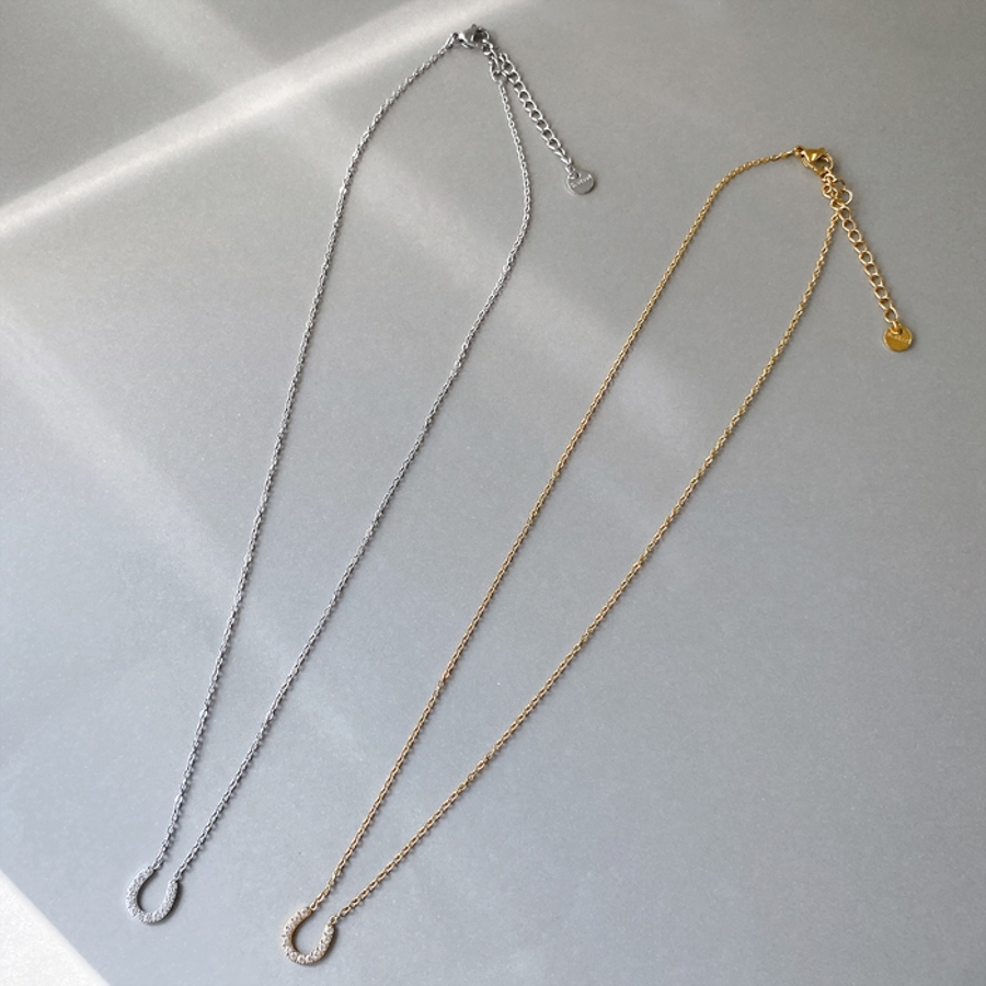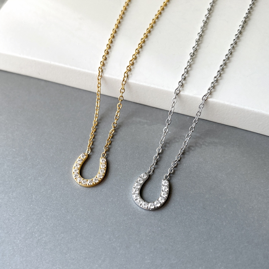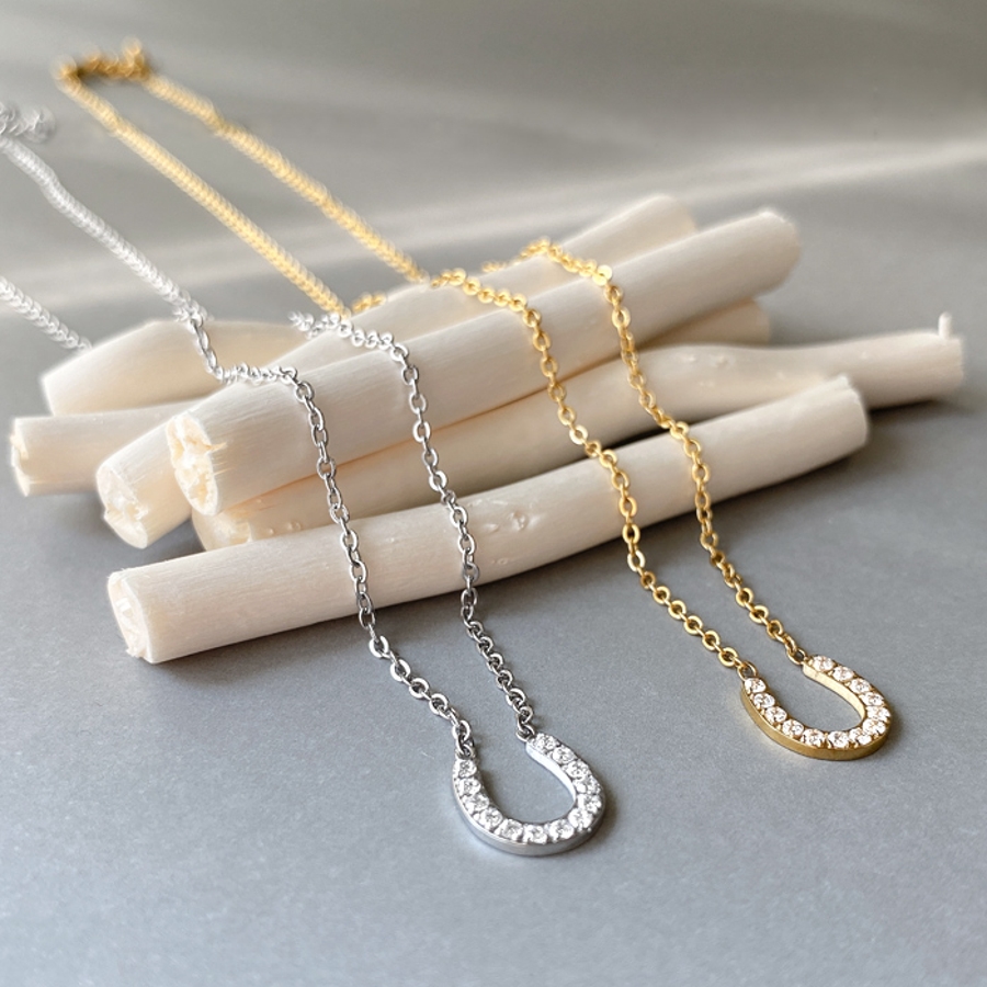 ストーン付馬蹄ステンレスネックレス ホースシュー U形