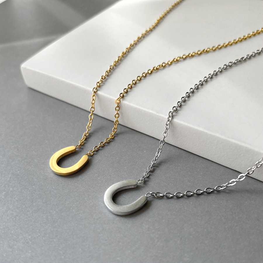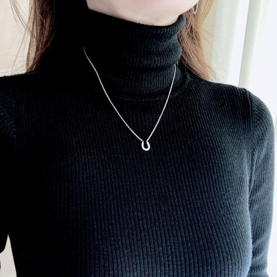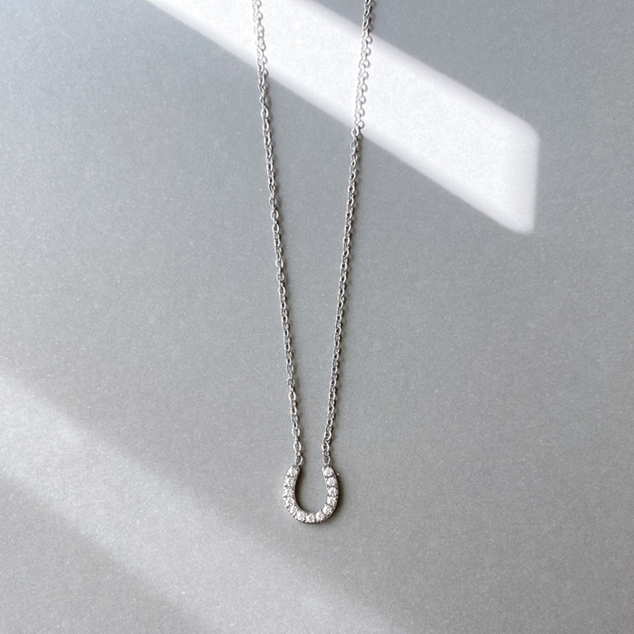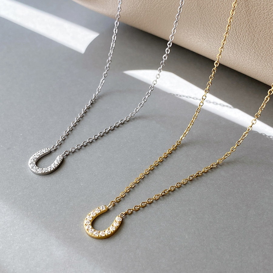 ストーン付馬蹄ステンレスネックレス ホースシュー U形