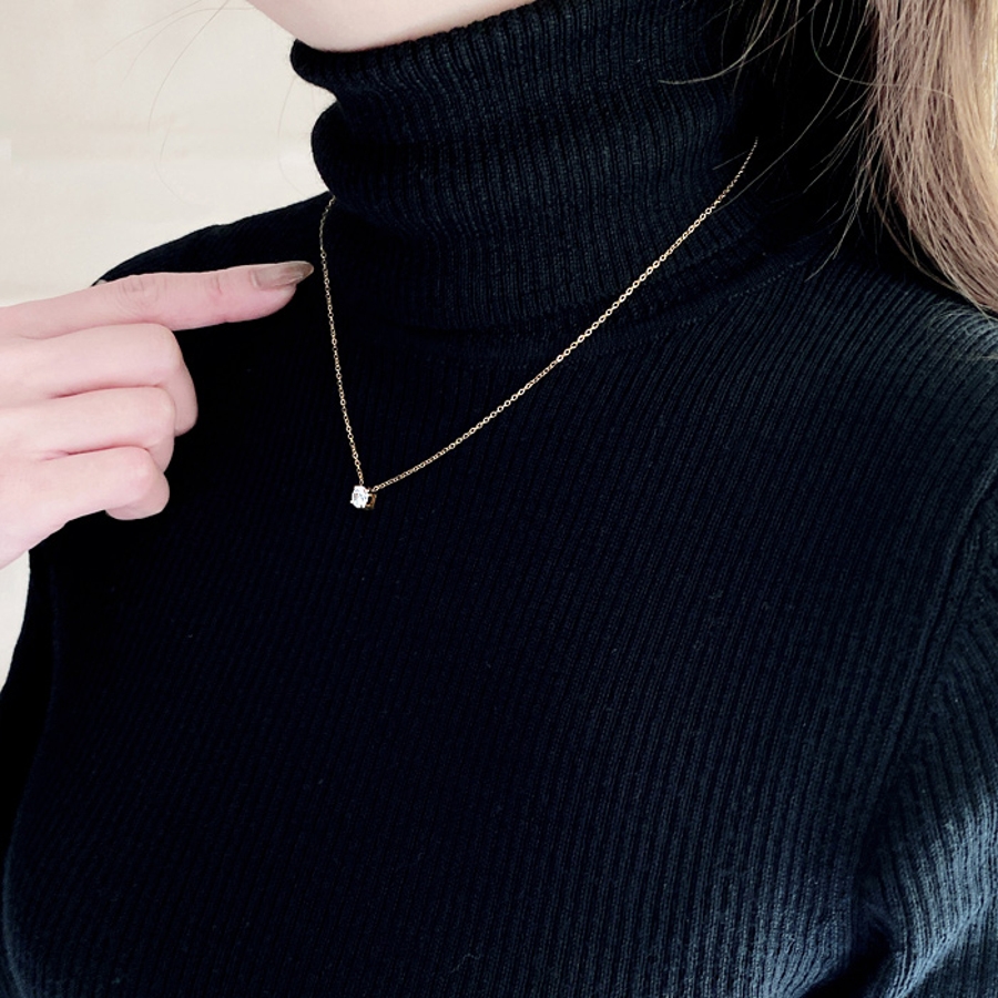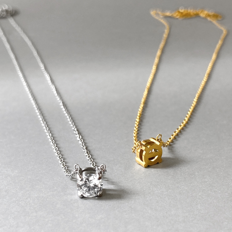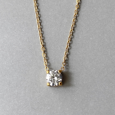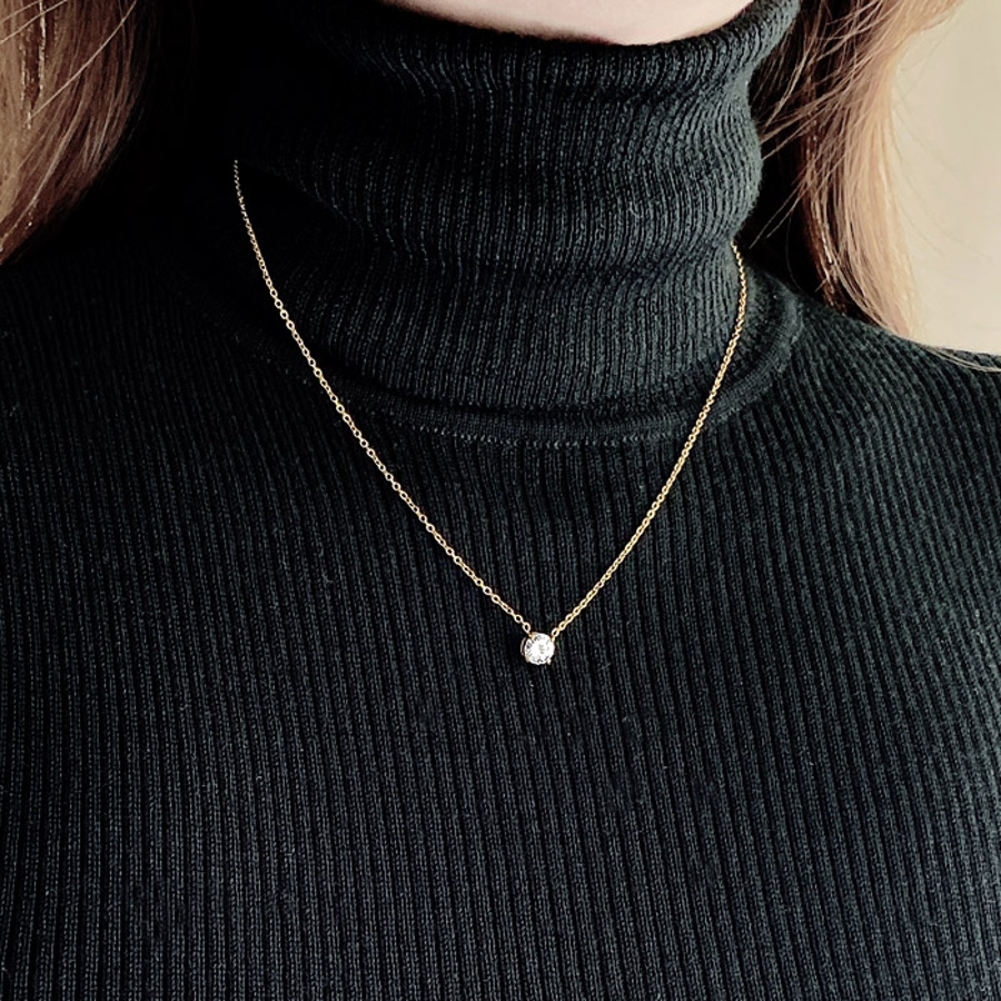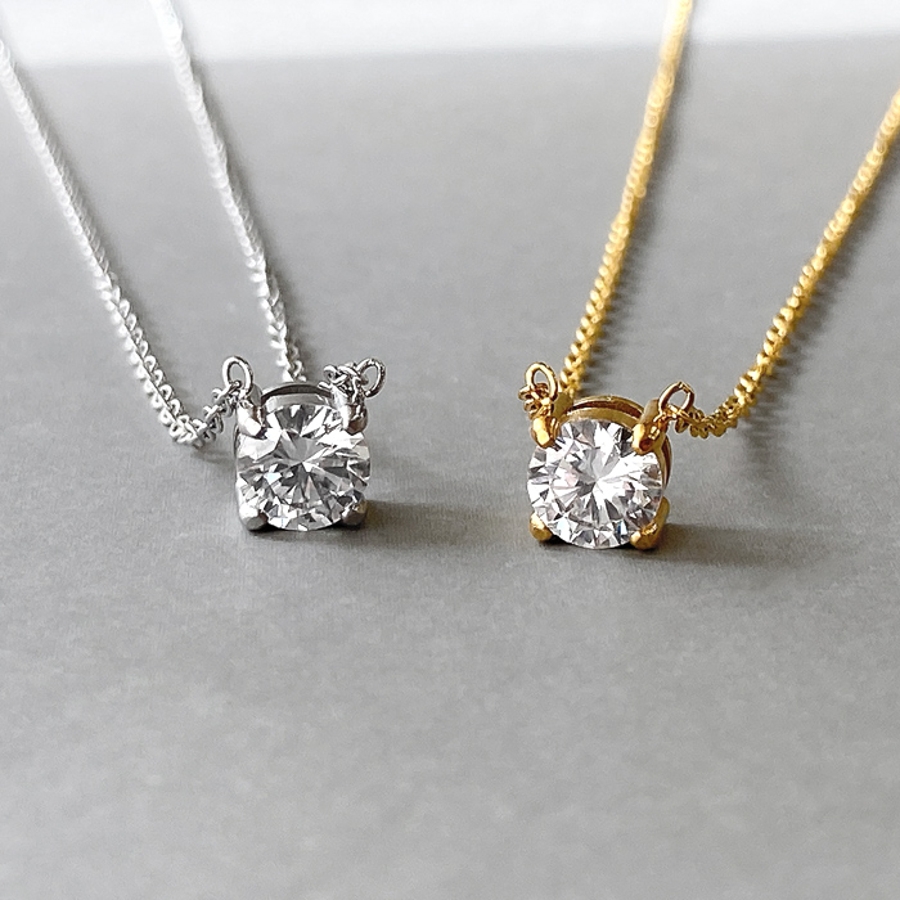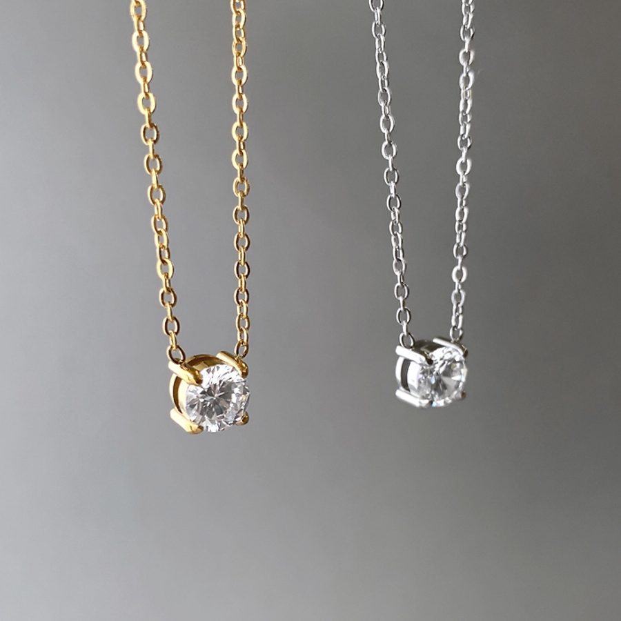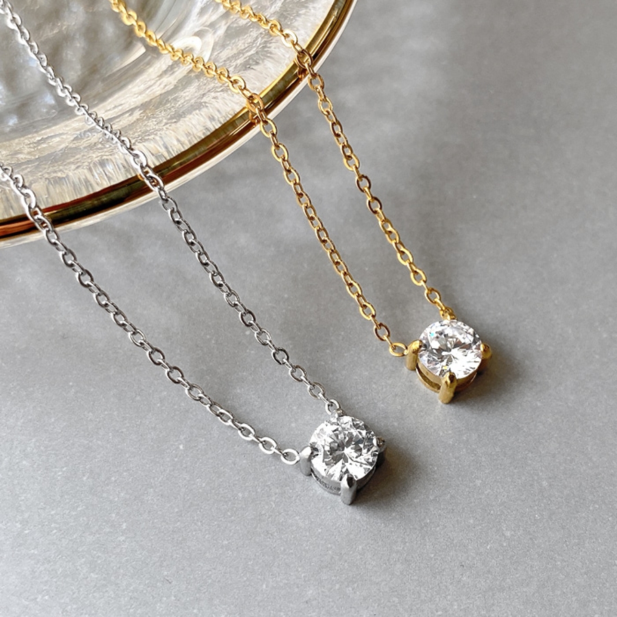 一粒ジルコニアステンレスネックレス サージカルステンレス 金属アレルギー対応