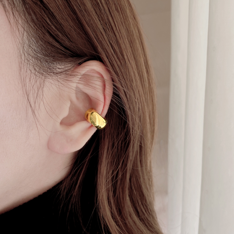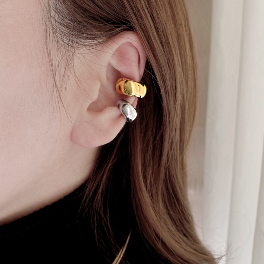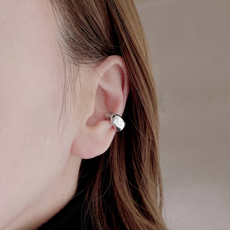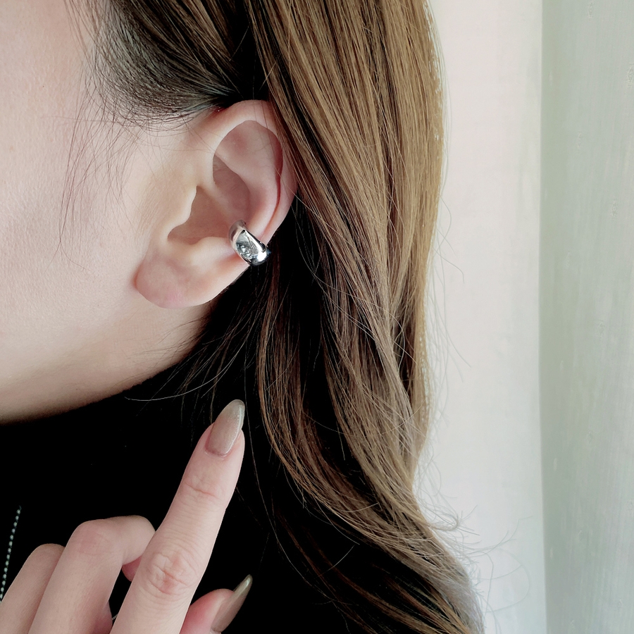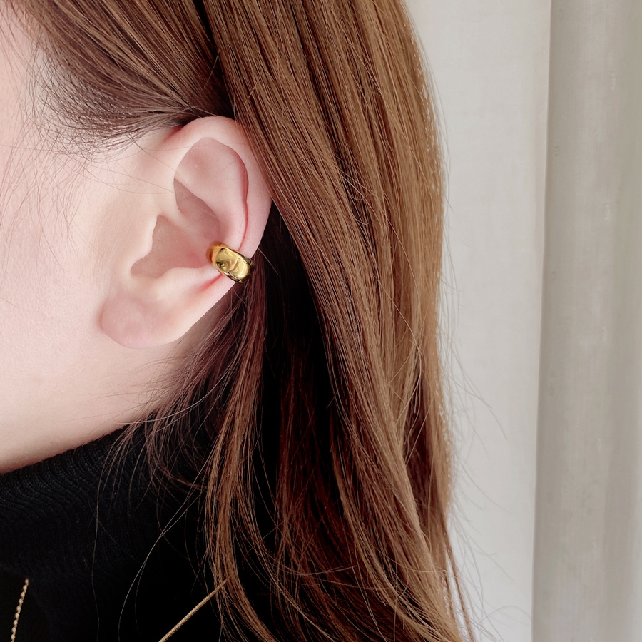 愛らしいぷっくりメタルフォルムが美しい、ドロップ型フープイヤーカフ(イヤリング)。