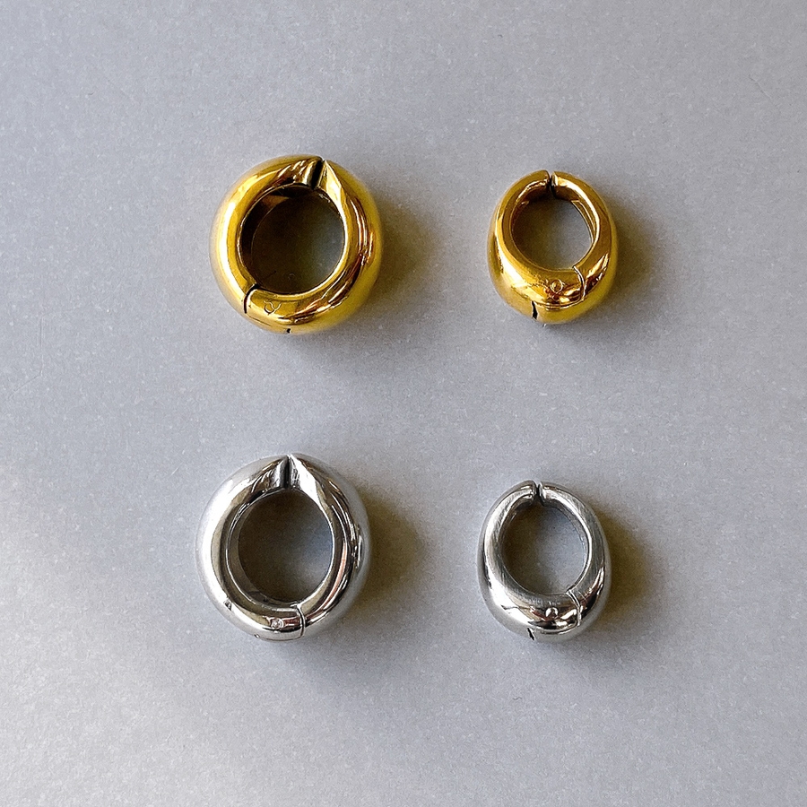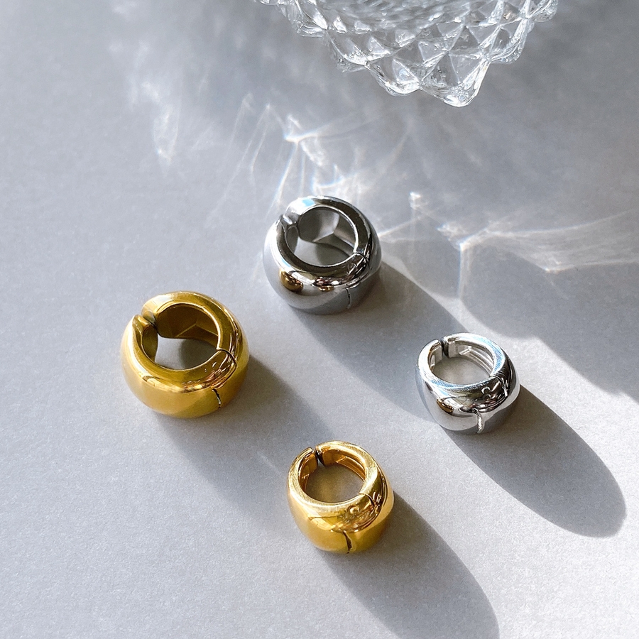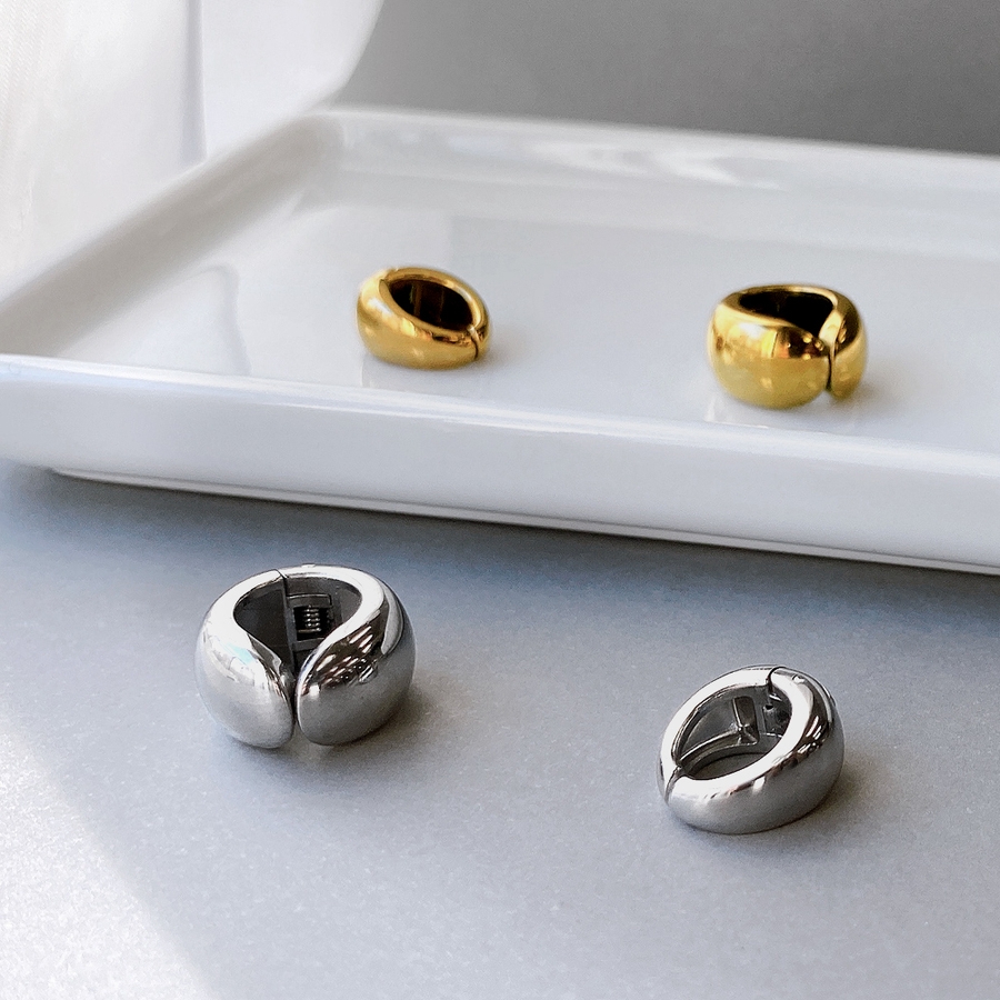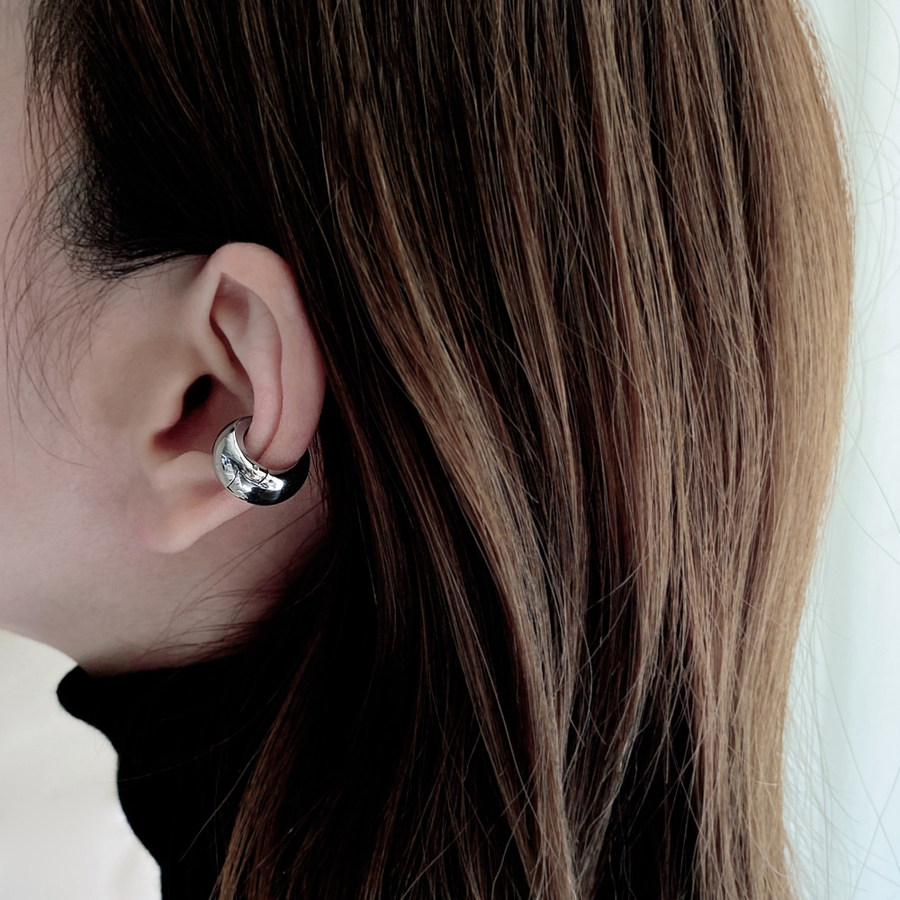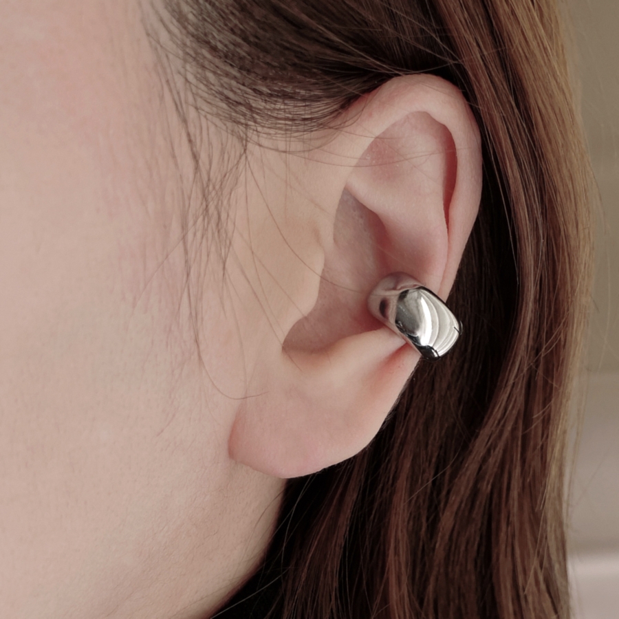愛らしいぷっくりメタルフォルムが美しい、ドロップ型フープイヤーカフ(イヤリング)。