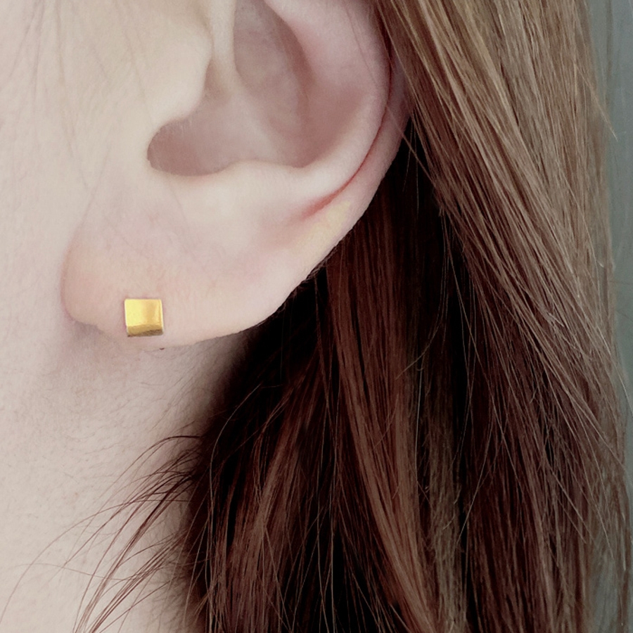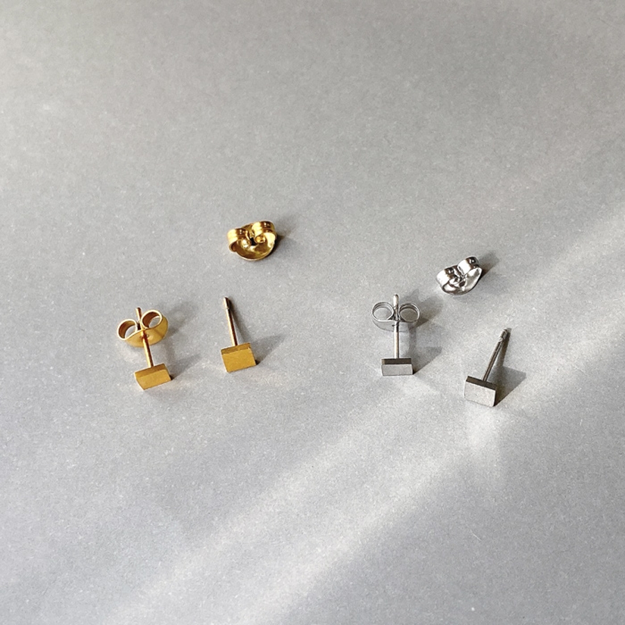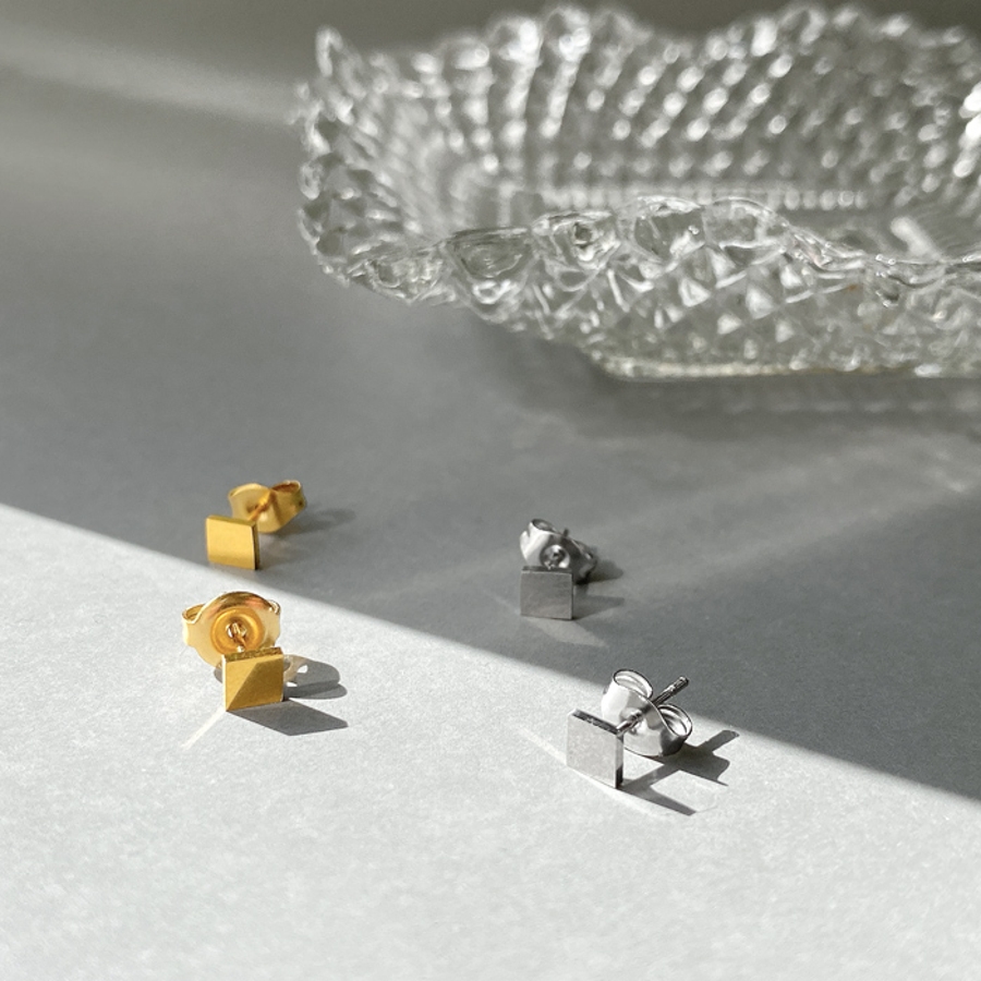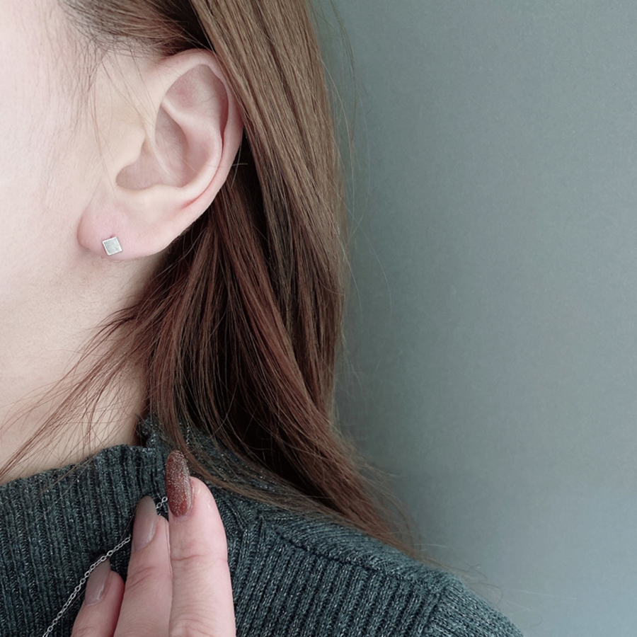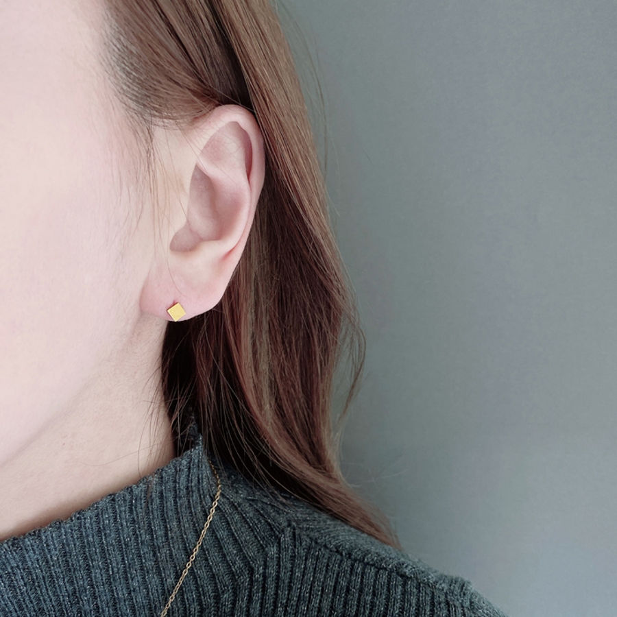 控えめで華奢なサイズのミニスクエア(ダイヤ型)スタッドピアス。
