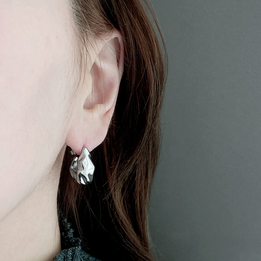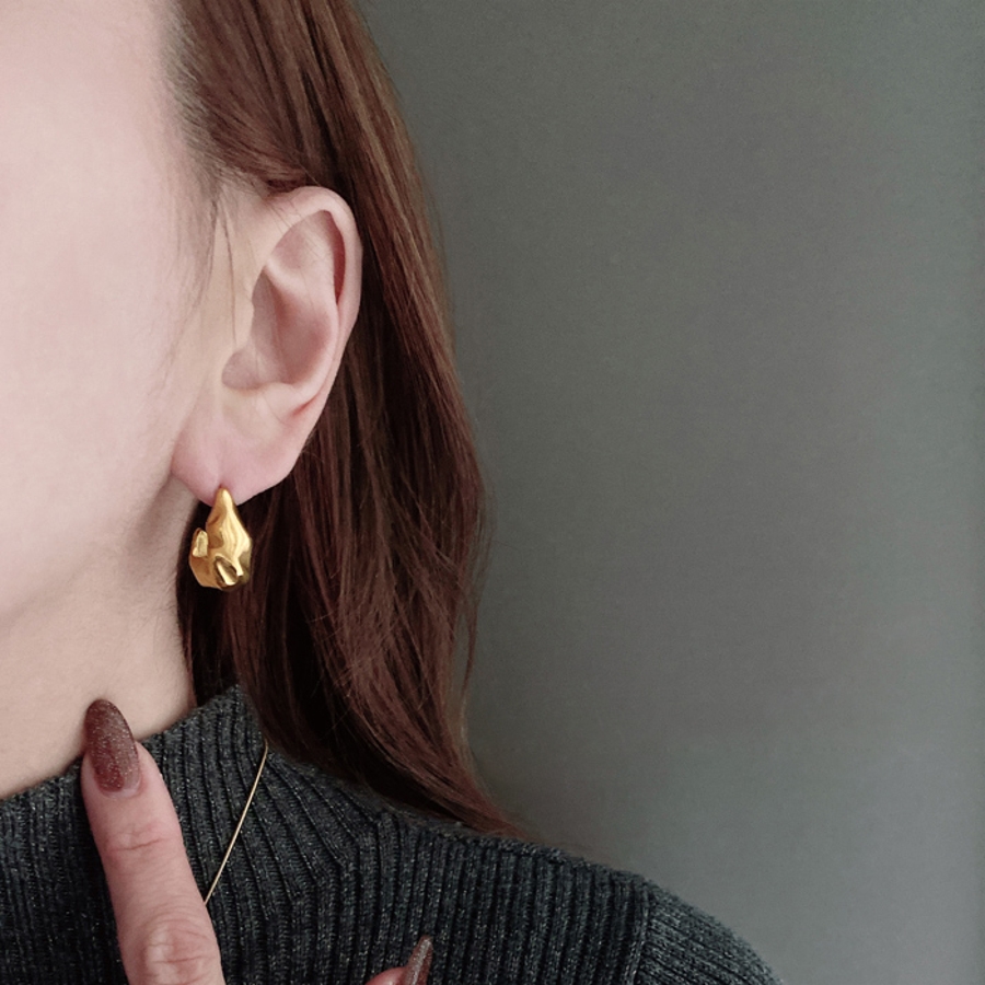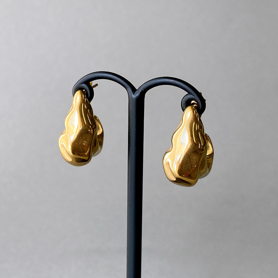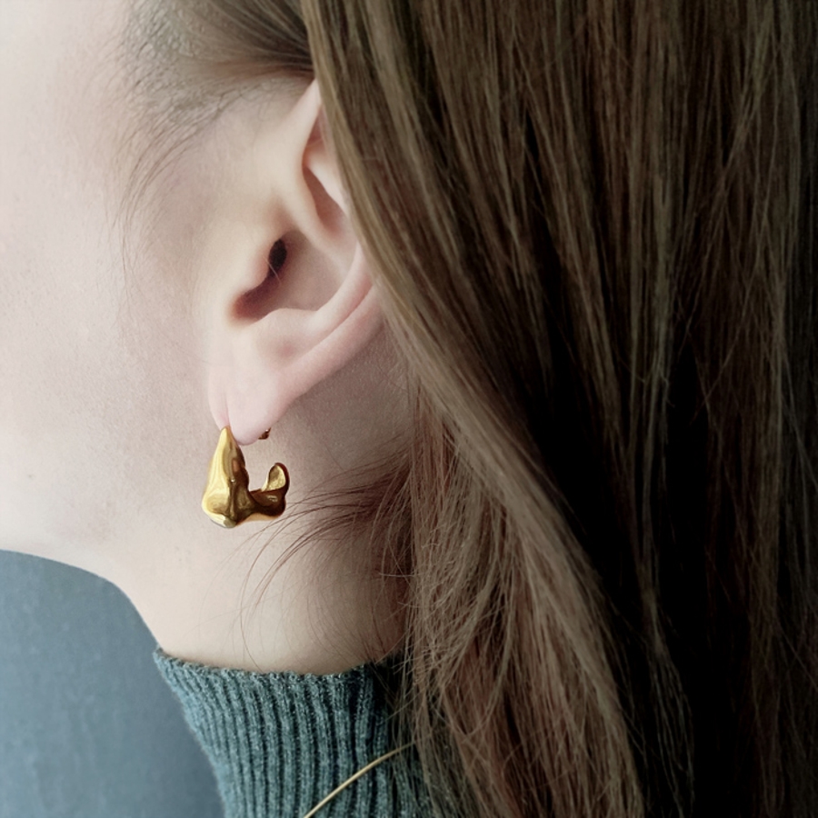 凸凹のモード感ある歪み加工が、耳元を華やかに飾らせます。