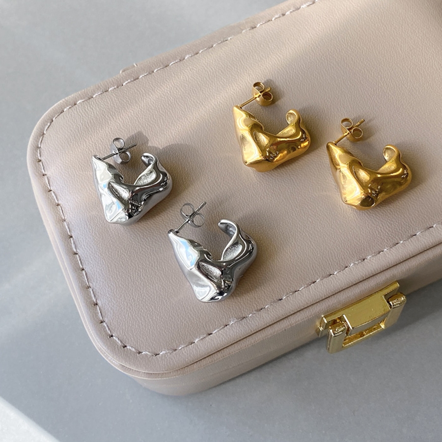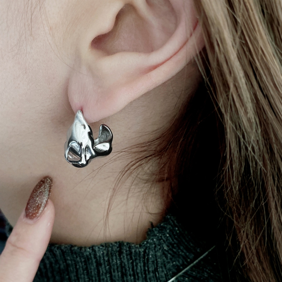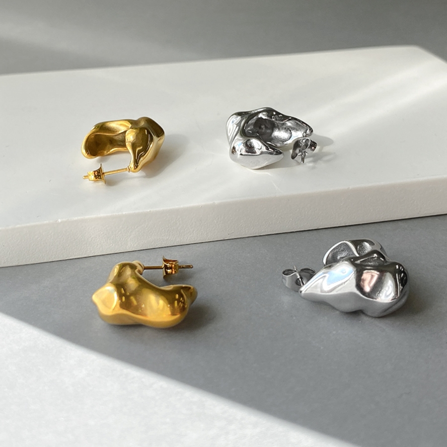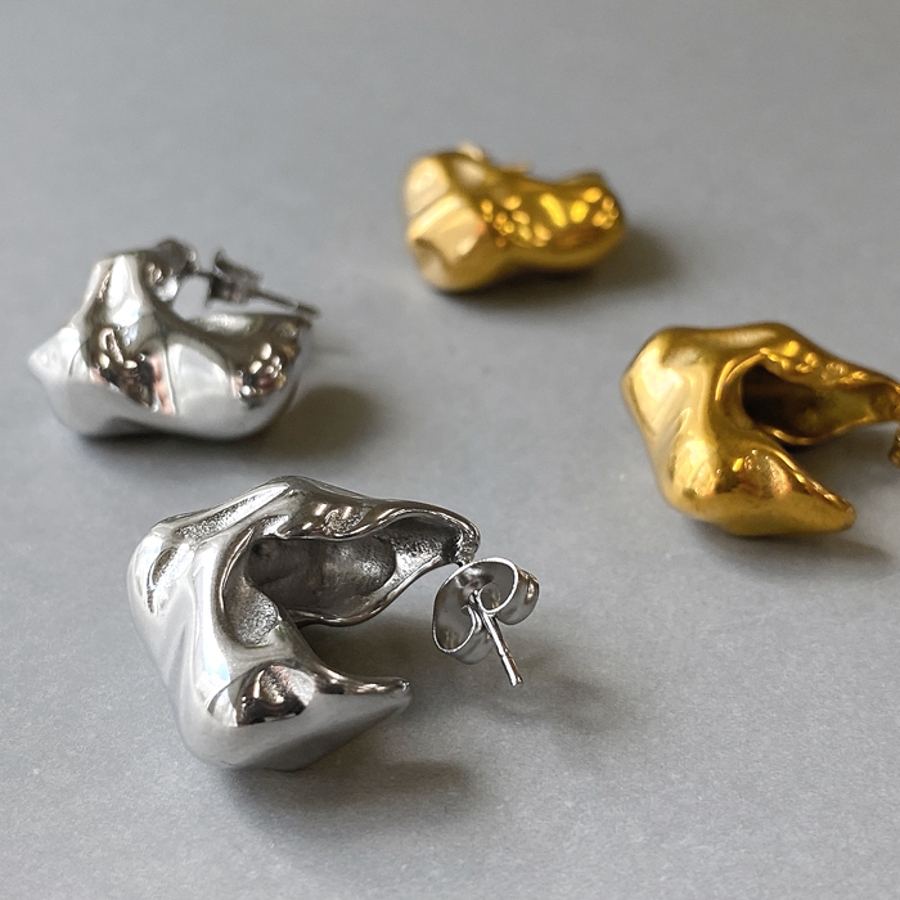凸凹のモード感ある歪み加工が、耳元を華やかに飾らせます。