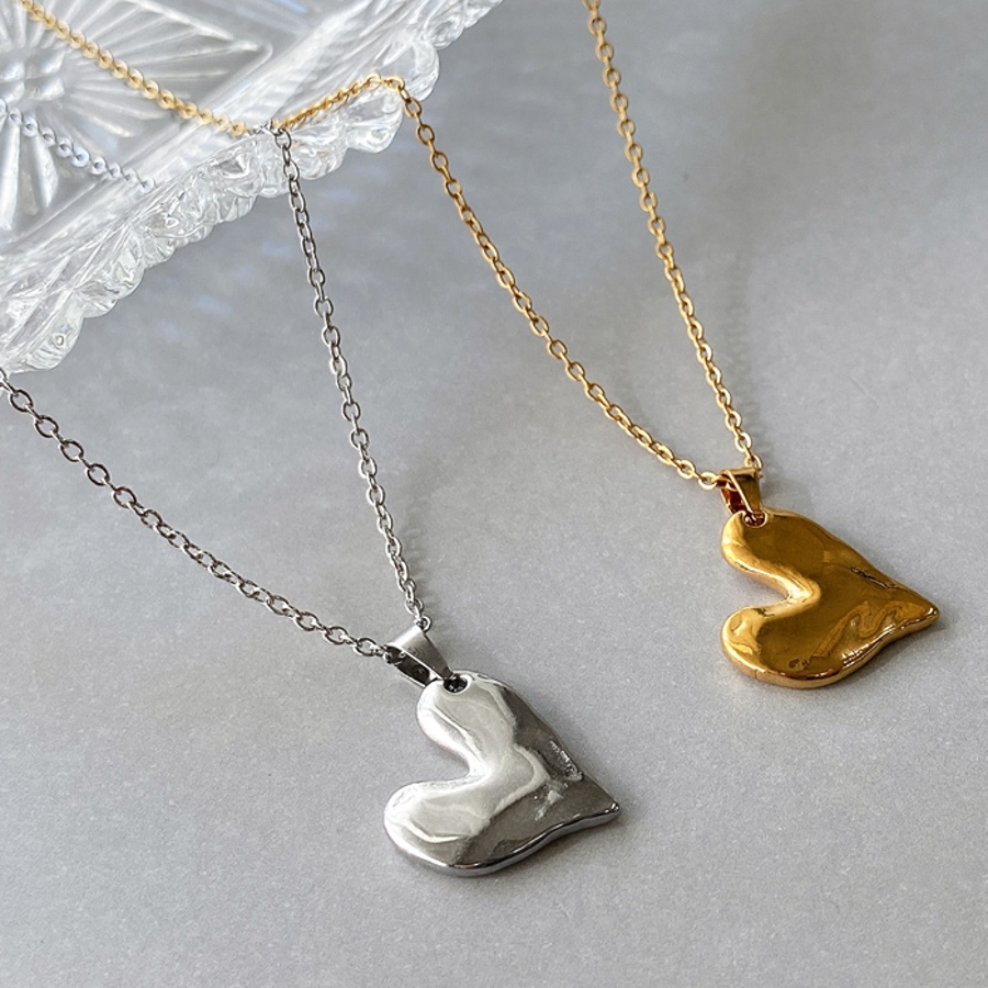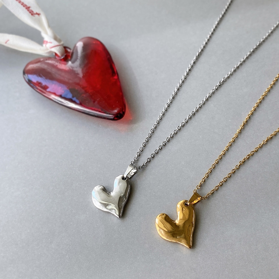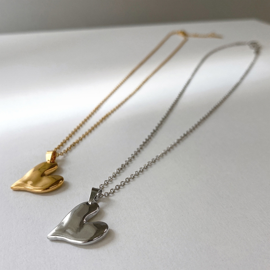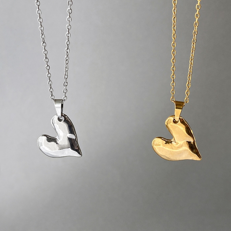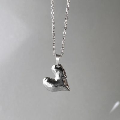 エンボスハートステンレスネックレス ペンダント サージカルステンレス