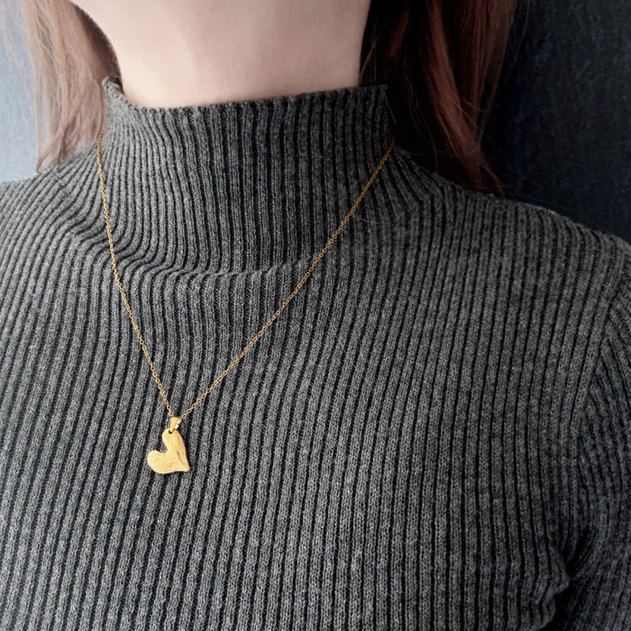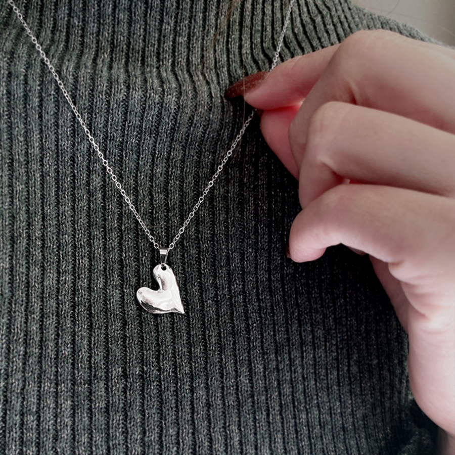 華奢なハートプレートにエンボス加工を施した、ハートペンダントネックレス。