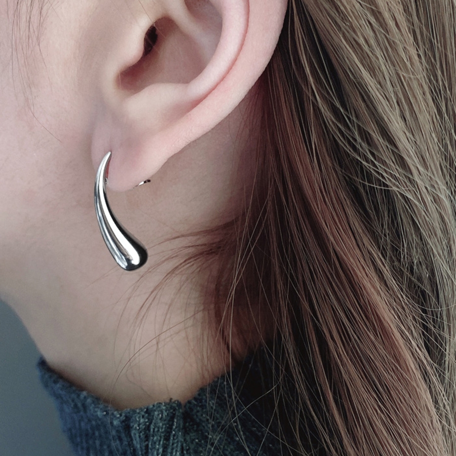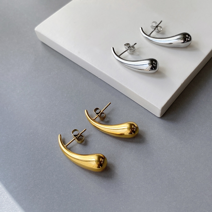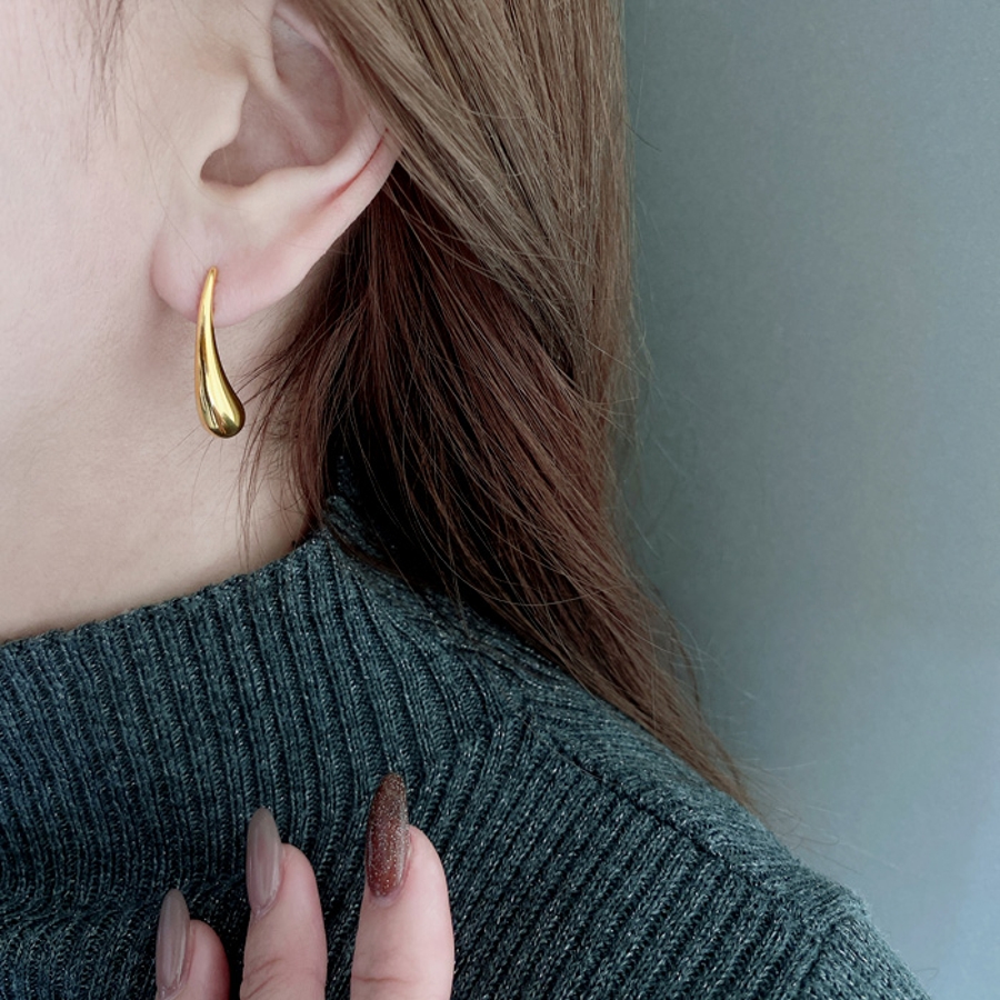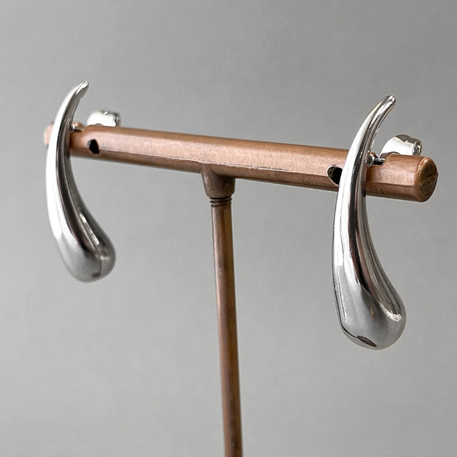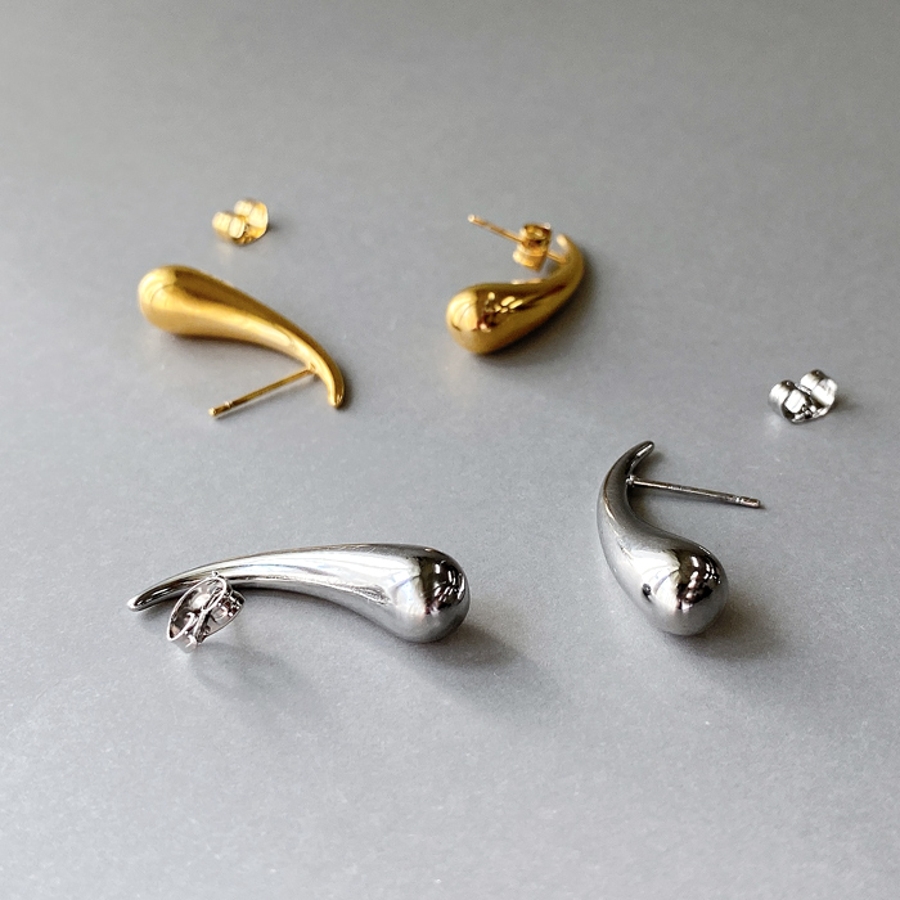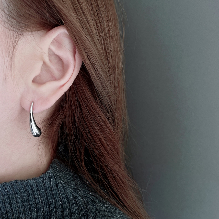 モード感あふれる、ドロップ型ステンレスメタルピアス。