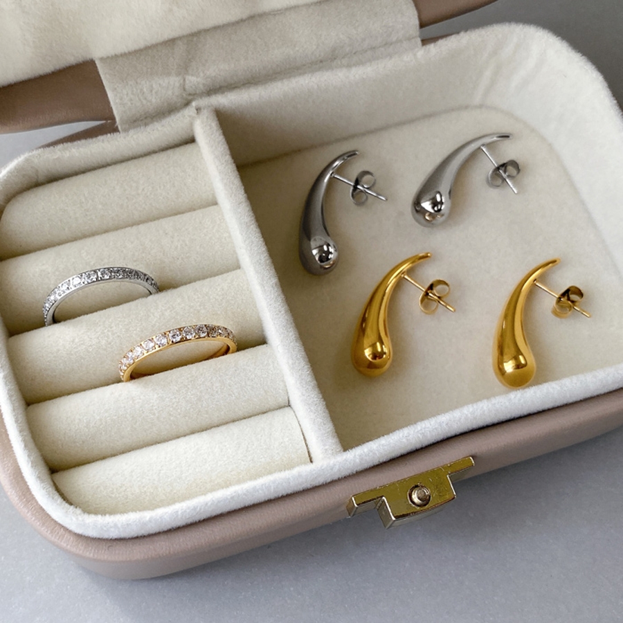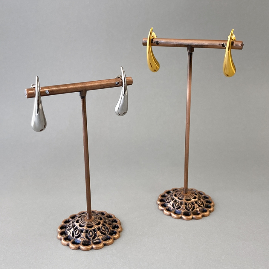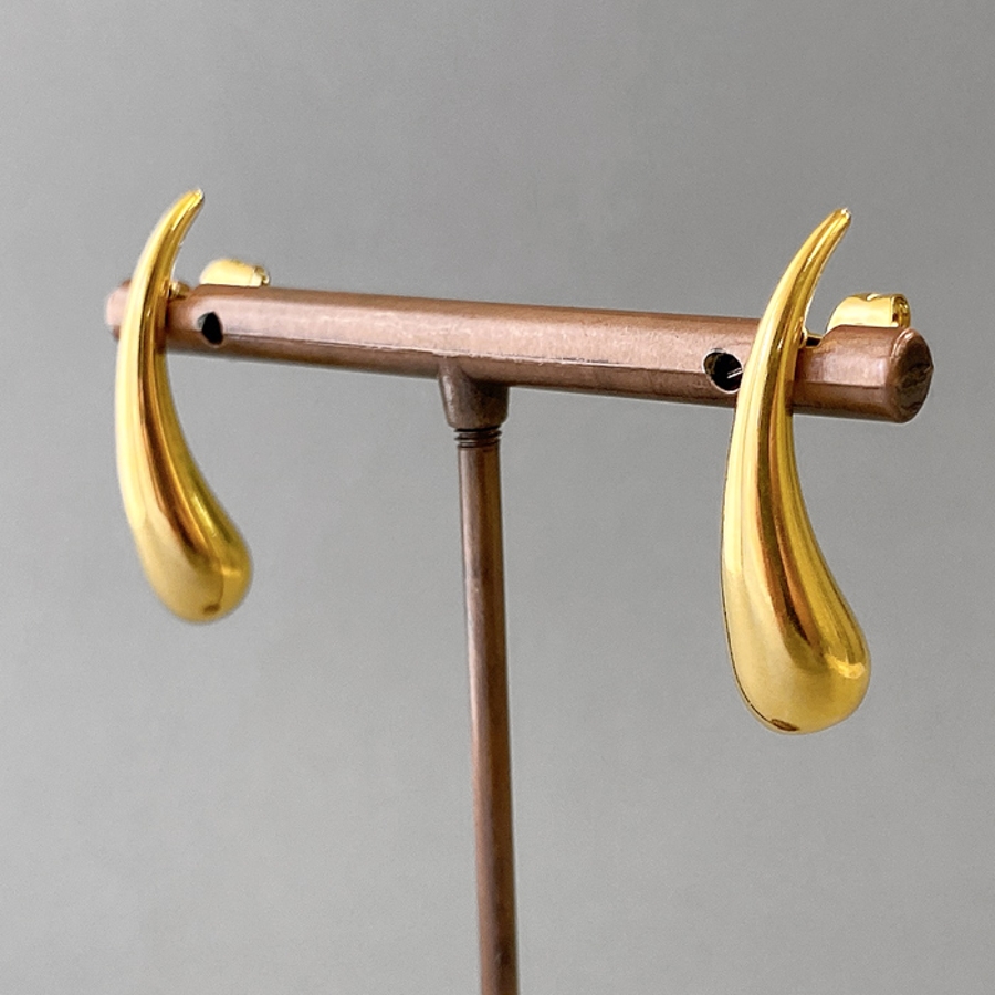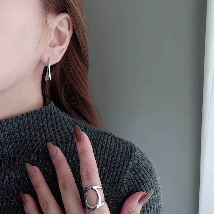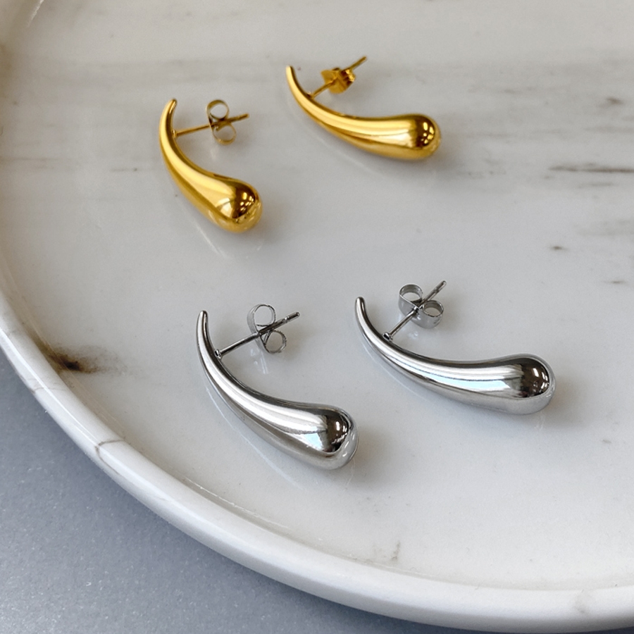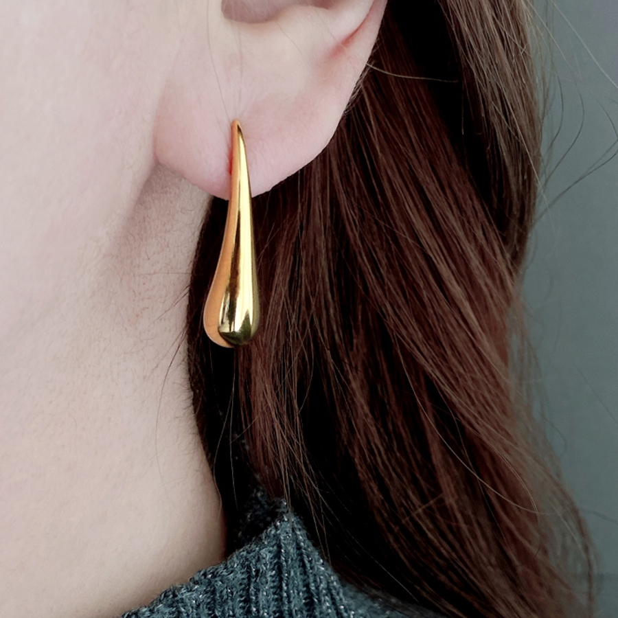 モード感あふれる、ドロップ型ステンレスメタルピアス。