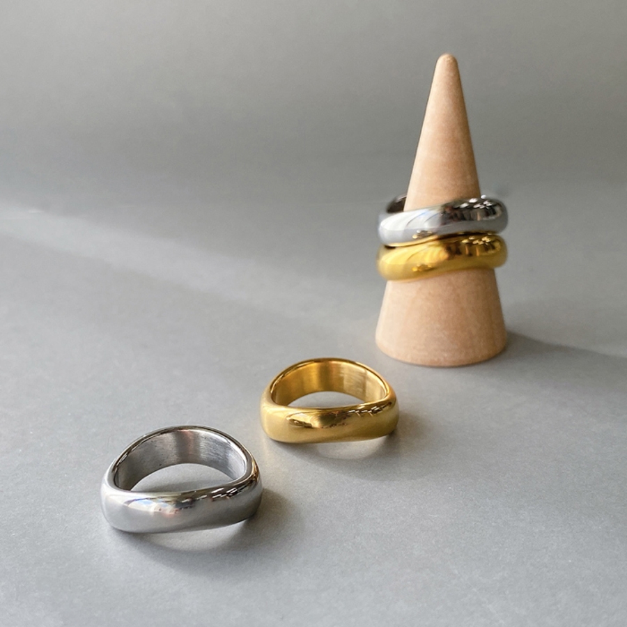 波のような曲線ラインが美しい、ステンレス素材のニュアンスリング。