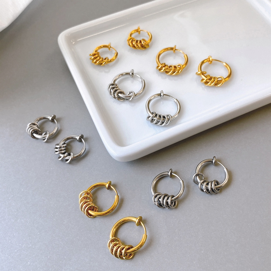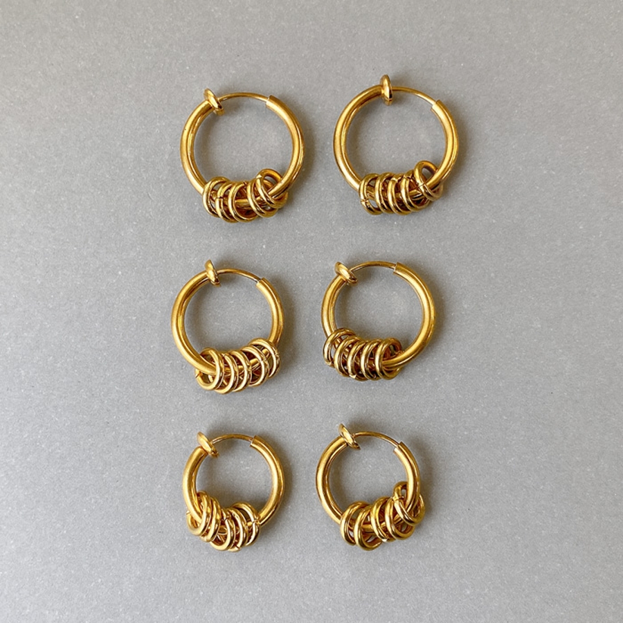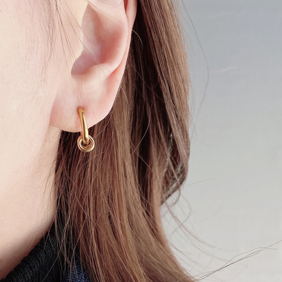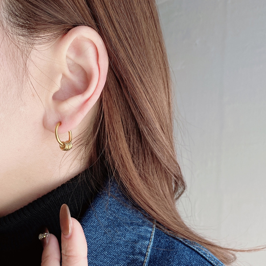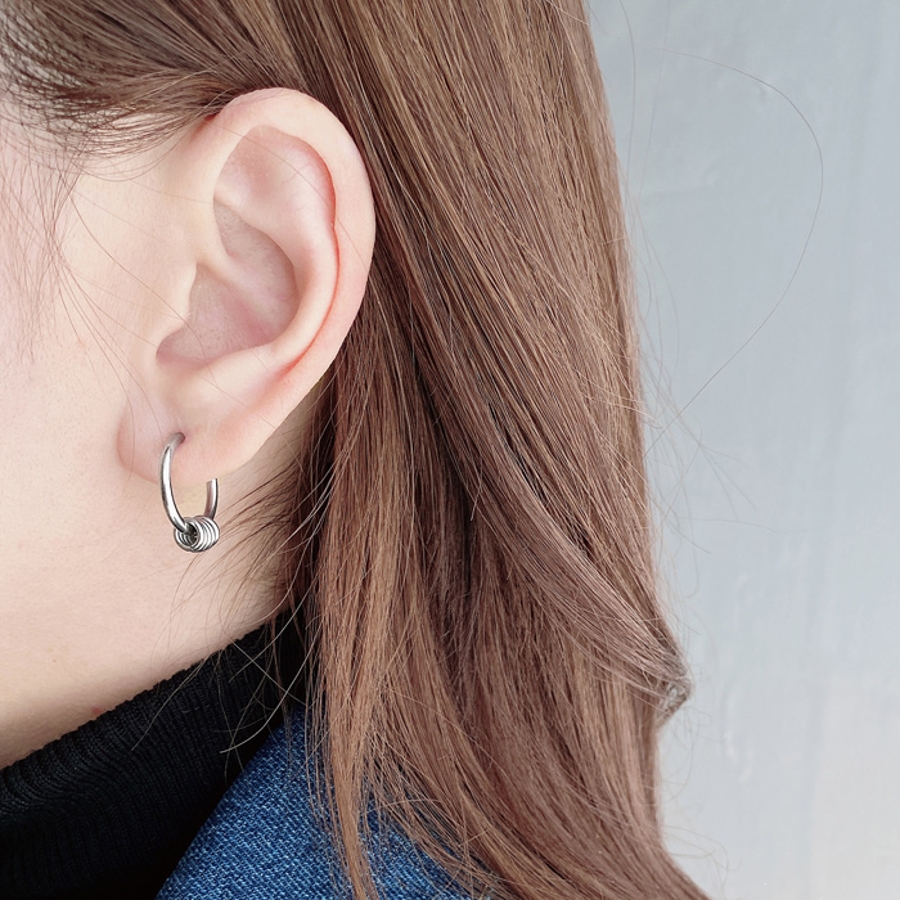 ピアスホールがなくてもピアスを着けているように見えるワンタッチ式ステンレスフープイヤリング。