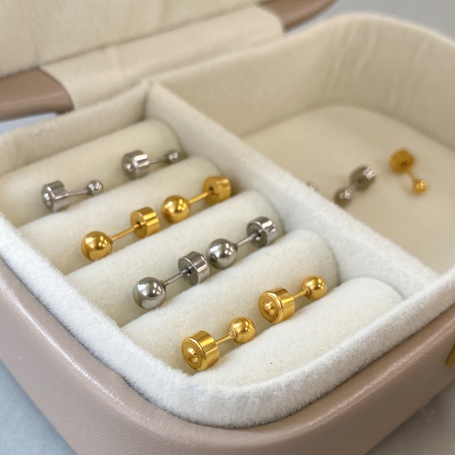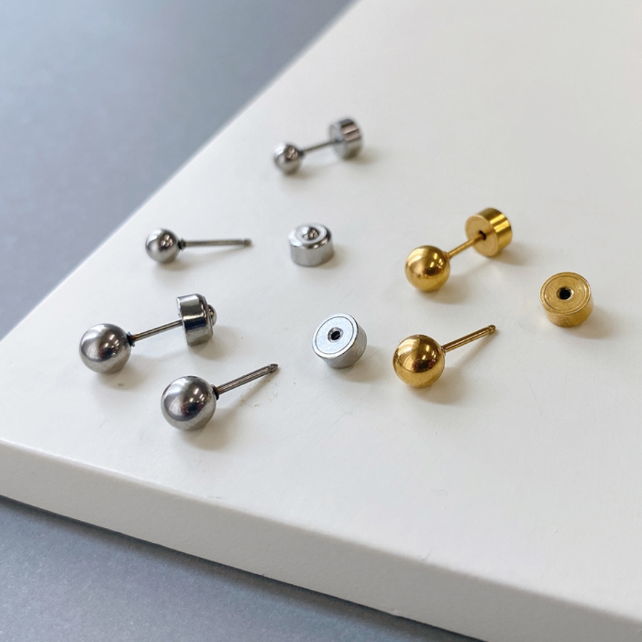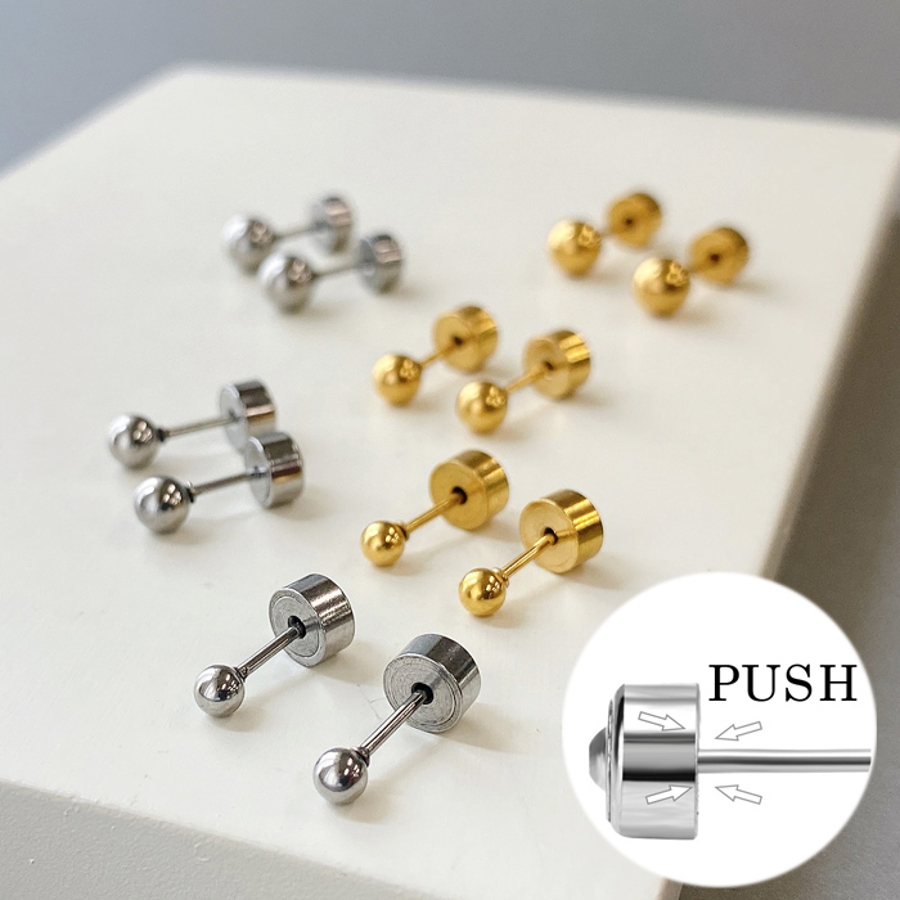 プッシュ式ボール型ステンレススタッドピアス 両耳用 ピアス