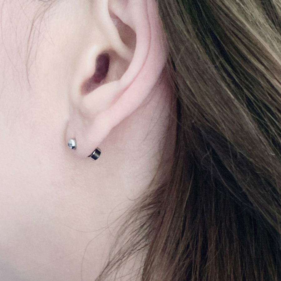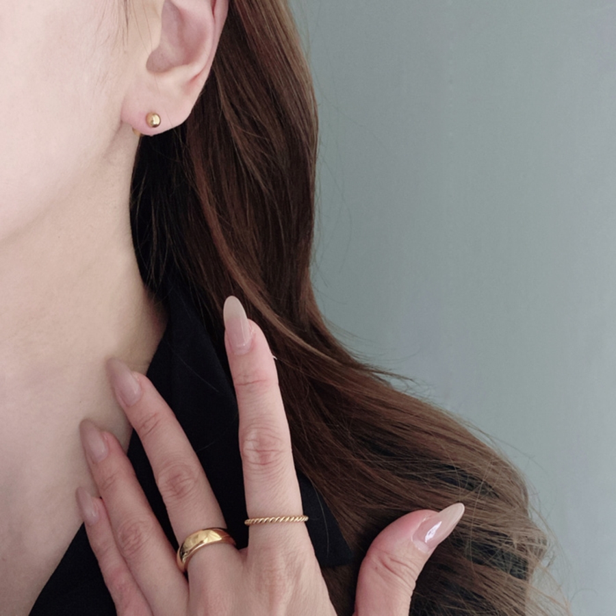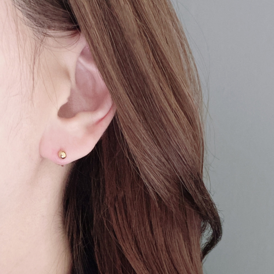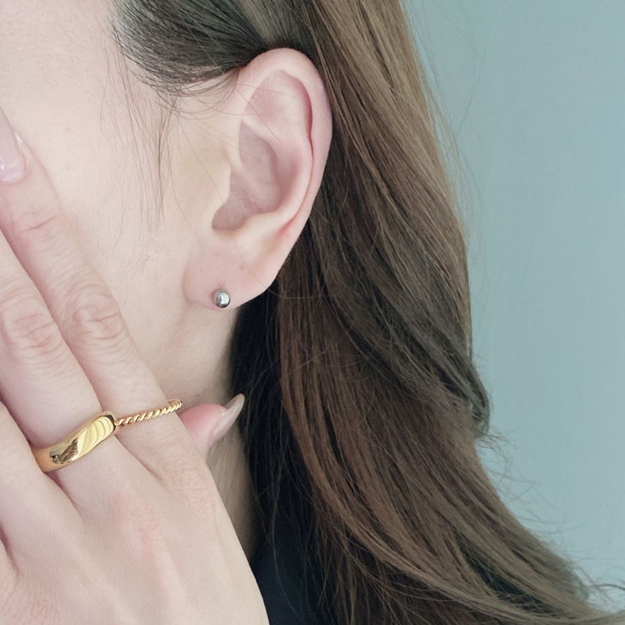 差し込むだけで簡単装着が可能な、プッシュタイプのステンレス製ボールスタッドピアス。