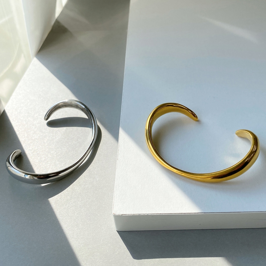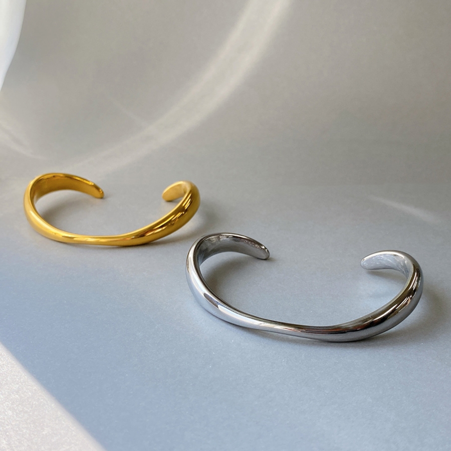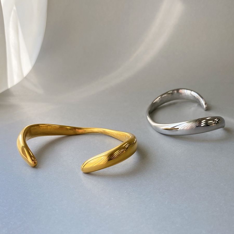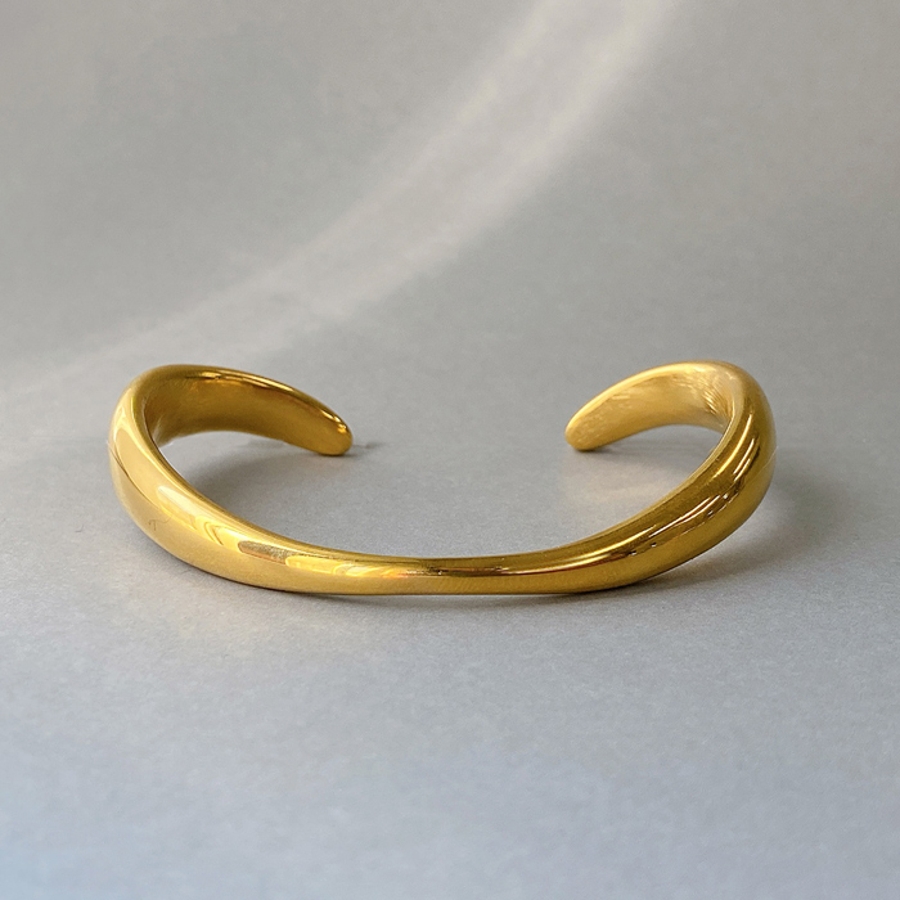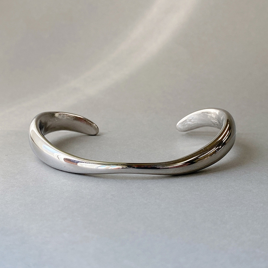 柔らかいカーブラインがポイントのステンレス製ウェーブメタルバングル。